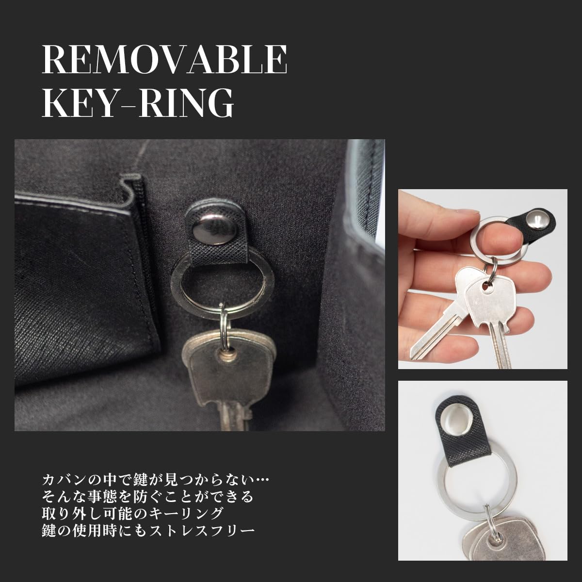 【充実のインナーポケット】 バッグ内部はファスナー付きポケットやスマートフォンも収納可能なマチ付きポケットなど、小物収納スペースが充実。ペンホルダーに取外し可能なキーリングも付属し、使いやすさにこだわりました。機能性とデザイン性を兼ね備えた、大人のための硬派なアイテムです。
