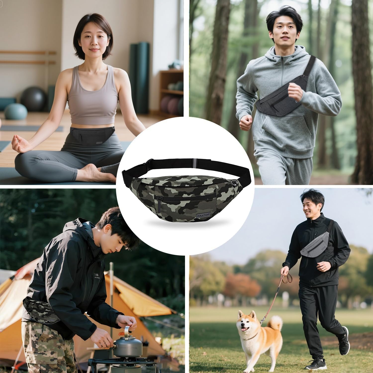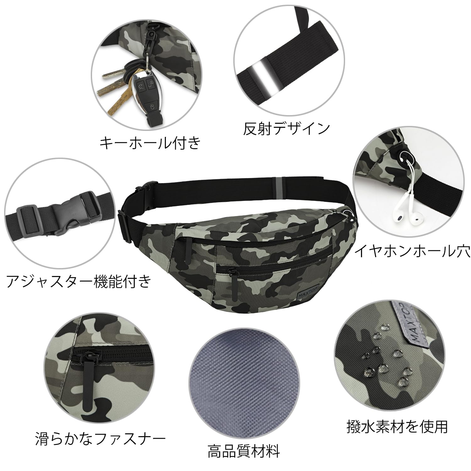 MAXTOP ウエストポーチ ウエストポーチ 4ポケット 多機能 軽量 反射タスキ付き キーホルダー付き イヤホンホール付き 調節可能ベルト ヒップバッグ メンズ レディース バイク レジャー スポーツ アウトドア 釣り 旅行 ランニング(迷彩1)