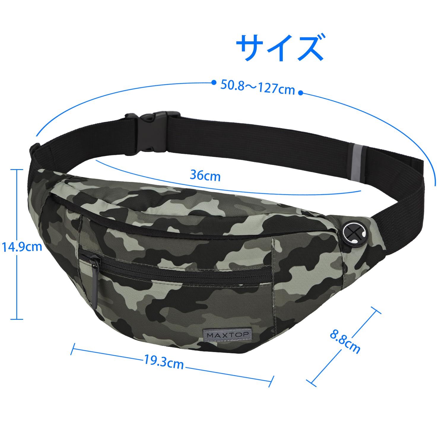 【大容量&多用途】サイズ:36cm×14.9cm×8.8cm。このウエストポーチのファスナーポケットが4つ付属。携帯電話、パスポート、鍵、財布、その他の小物などが入れられます、軽量出行を楽しみたい人におすすめの人気のウエストバッグです。ランニング、ウォーキング、登山、ハイキング、サイクリング、自転車、釣り、ペットの散歩、フィットネス、キャンプ、アウトドア、ゴルフ、ジム用として、多目的にお使い頂けるボディバッグです。