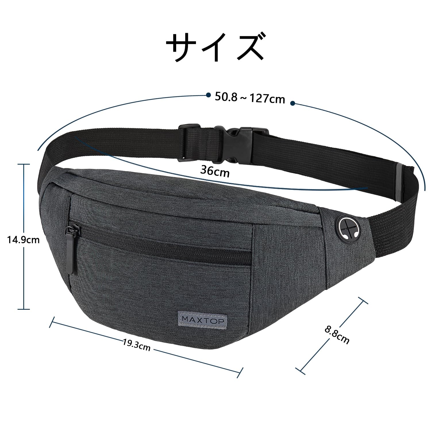 【大容量&多用途】サイズ:36cm×14.9cm×8.8cm。このウエストポーチのファスナーポケットが4つ付属。携帯電話、パスポート、鍵、財布、その他の小物などが入れられます、軽量出行を楽しみたい人におすすめの人気のウエストバッグです。ランニング、ウォーキング、登山、ハイキング、サイクリング、自転車、釣り、ペットの散歩、フィットネス、キャンプ、アウトドア、ゴルフ、ジム用として、多目的にお使い頂けるボディバッグです。
