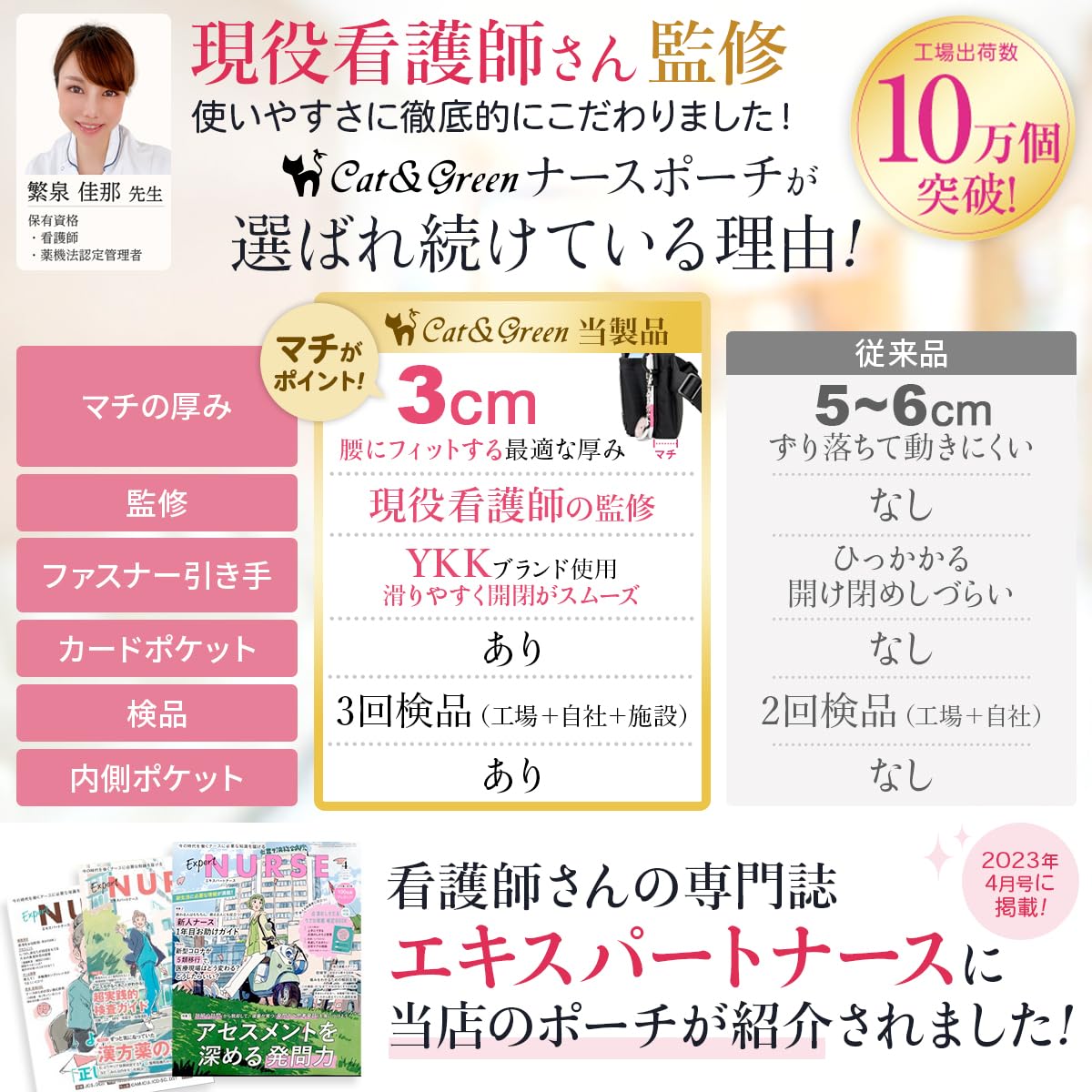【看護専門誌に掲載】 ナースポーチ [現役看護師監修] ウエストポーチ 看護師ポーチ Cat&Green