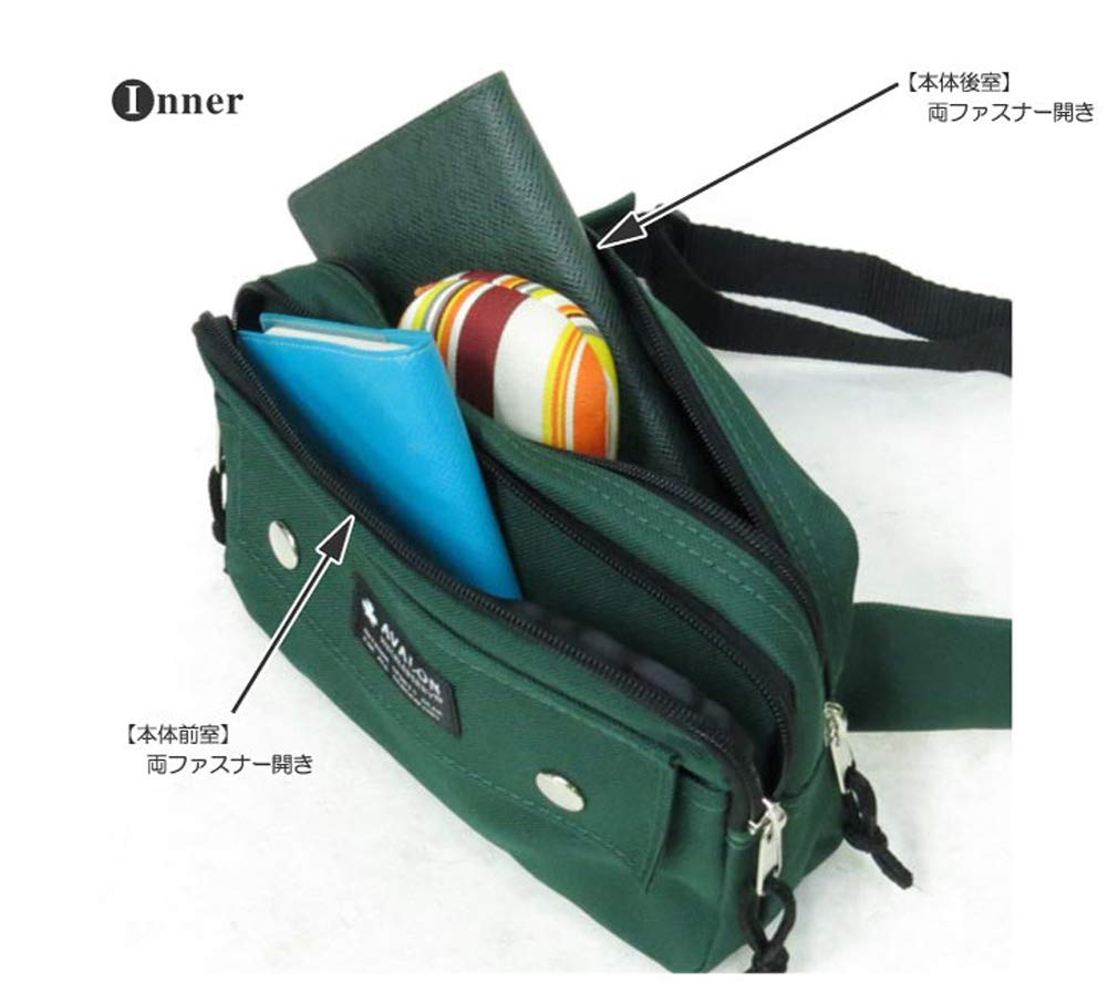 (アバロン ハックルベリー) AVALON HUCKLEBERRY アバロンハックルベリー 7002 盗難防止 二重ロック構造 本体2室 前ポケット付き ウエストポーチ (グリーン)