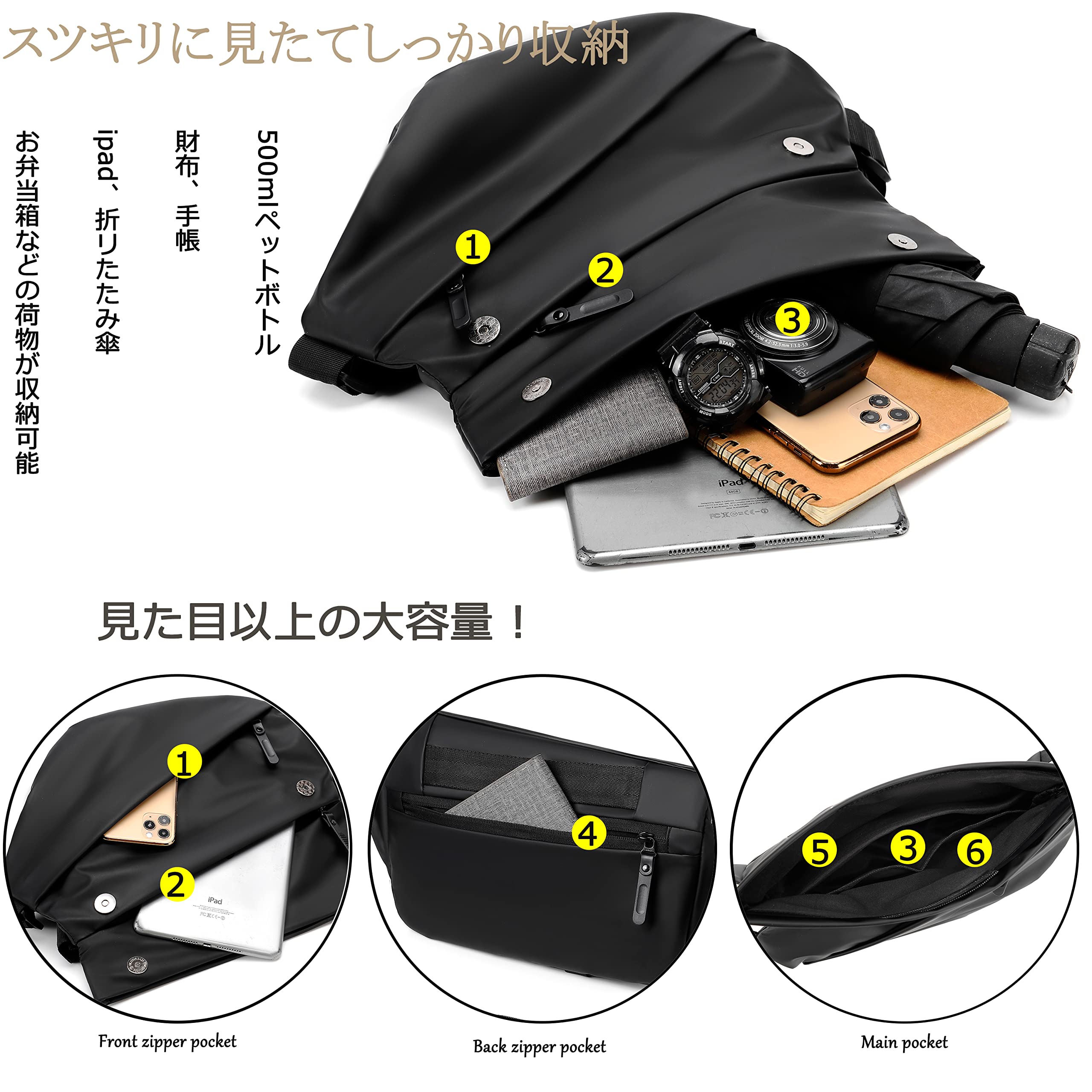 [FSD.WG] ボディバッグ 大きめ メンズ 斜めがけ ワンショルダーバッグ メッセンジャーバッグ ショルダーバッグ iPad収納可(L12.9インチ;M9.7インチ)大容量 軽量 通勤 通学 旅行 アウトドア 人気