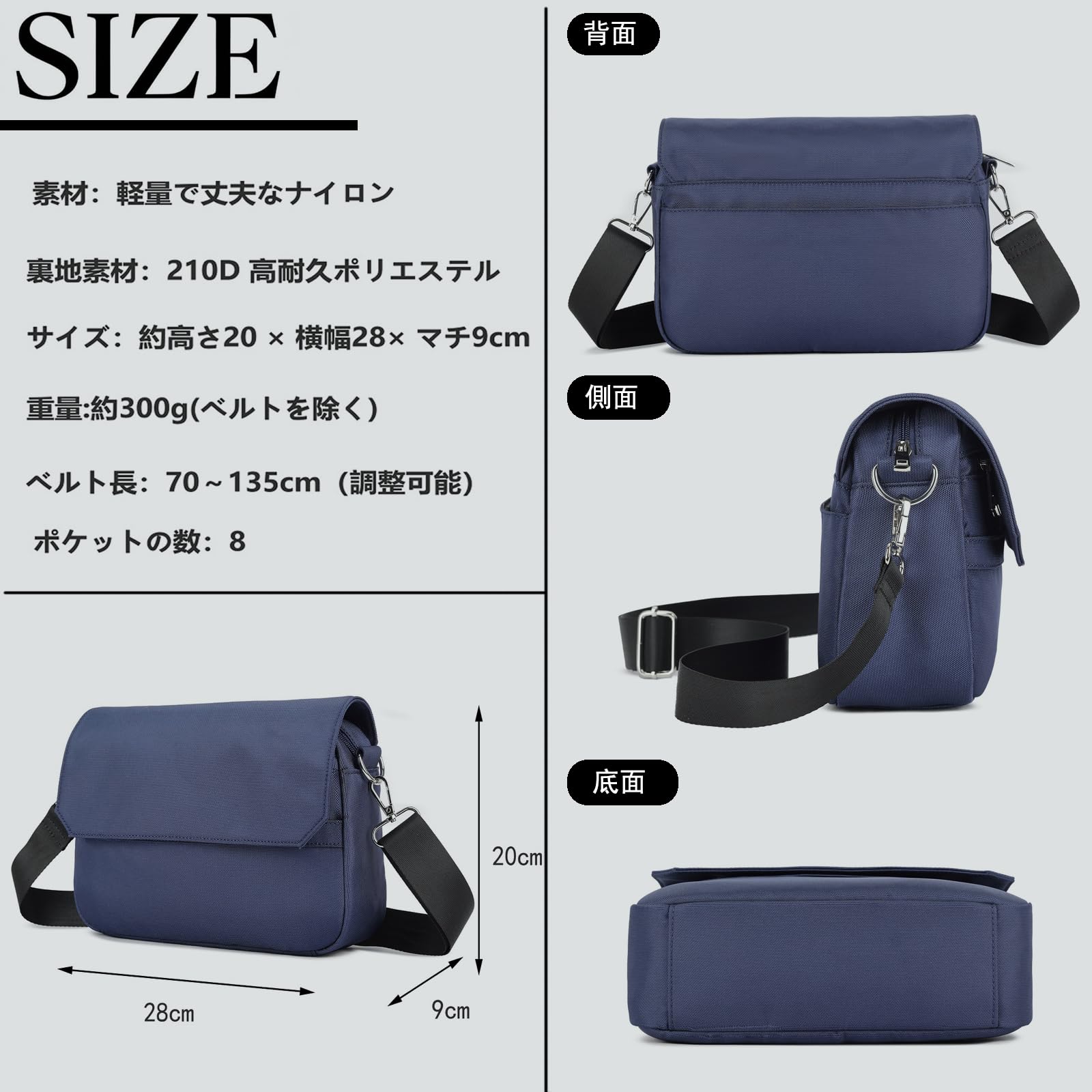 [KMRHM] メンズ ショルダーバッグ 小さめ ブランド サコッシュ 横型 ナイロン 軽量 男女兼用 撥水 斜めがけ 多機能 ワンショルダー 肩掛けバッグ ビジネス メッセンジャーバッグ おしゃれ bag ファスナー 002