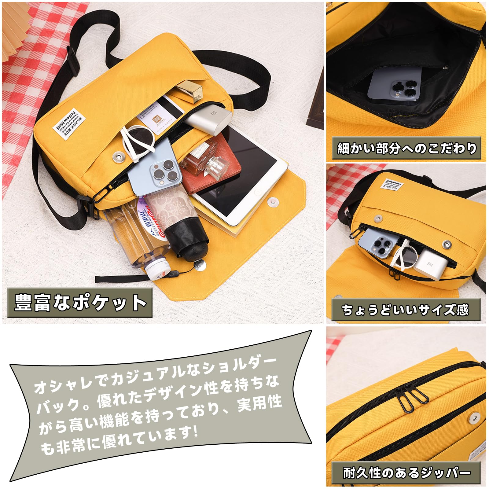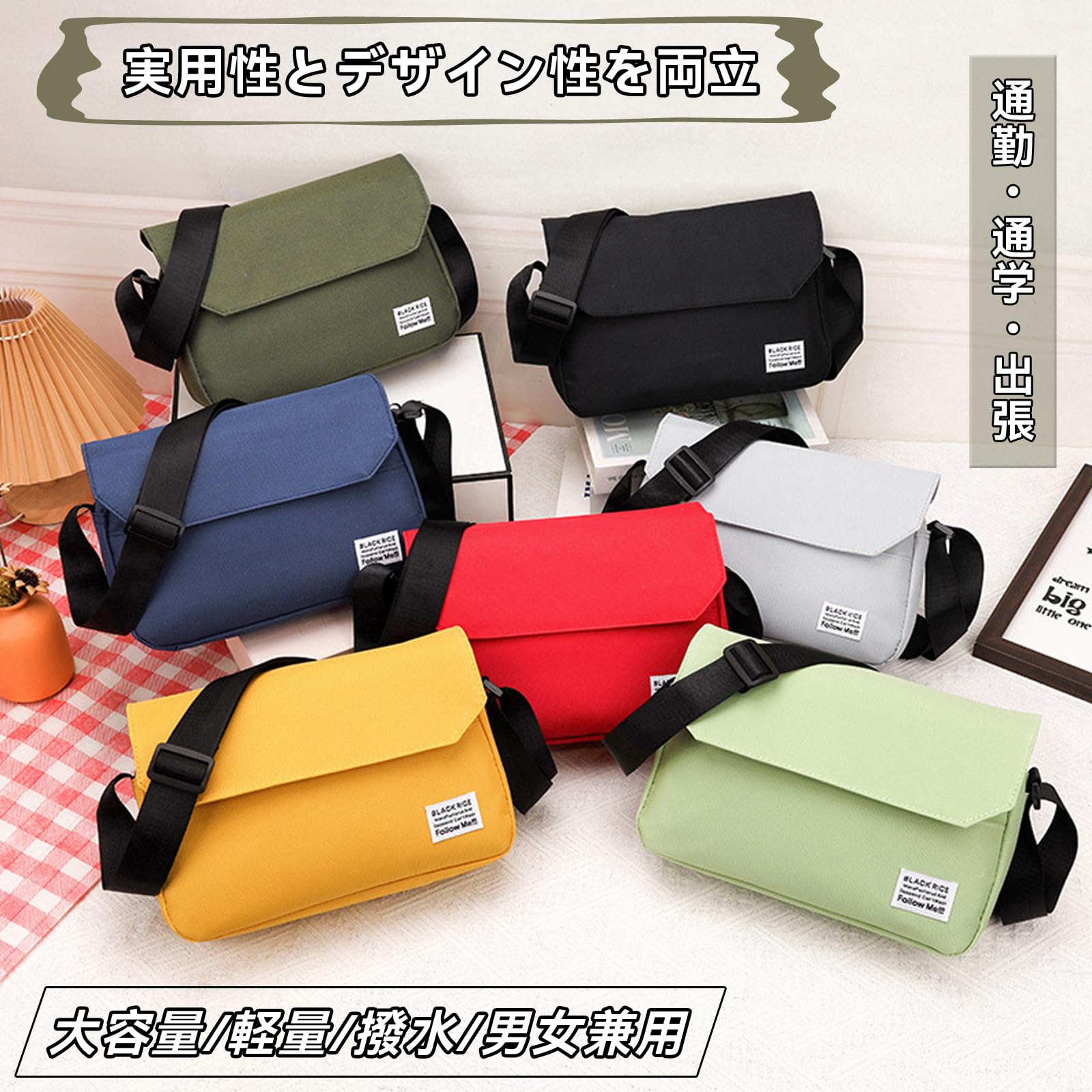 【9.7インチiPad入れる大容量】: ノートやスマホ、手帳、メガネ、モバイルバッテリー、財布、9.7インチiPadまで入れる大容量ショルダーバッグ!内装には4個ポケットがあり、背面にも防水ファスナーポケットがあり、お荷物を整理整頓できます。出かけならこのバッグだけ十分です!