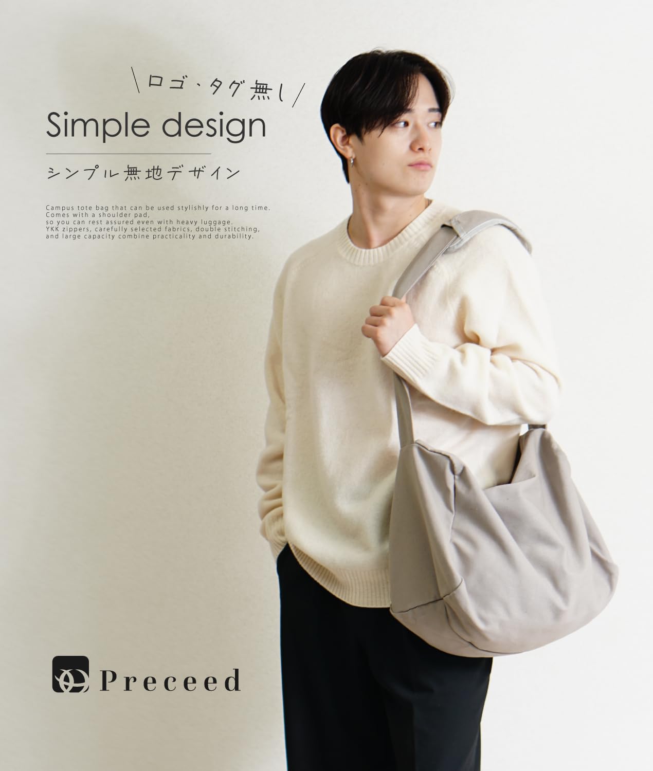 [Preceed] 新色登場【肩が痛くならない】 トートバッグ キャンバス ショルダーバッグ 大容量 脱着可能肩パッド付属 YKKファスナー 内ポケット2口 男女兼用 日本メーカー ドラム型