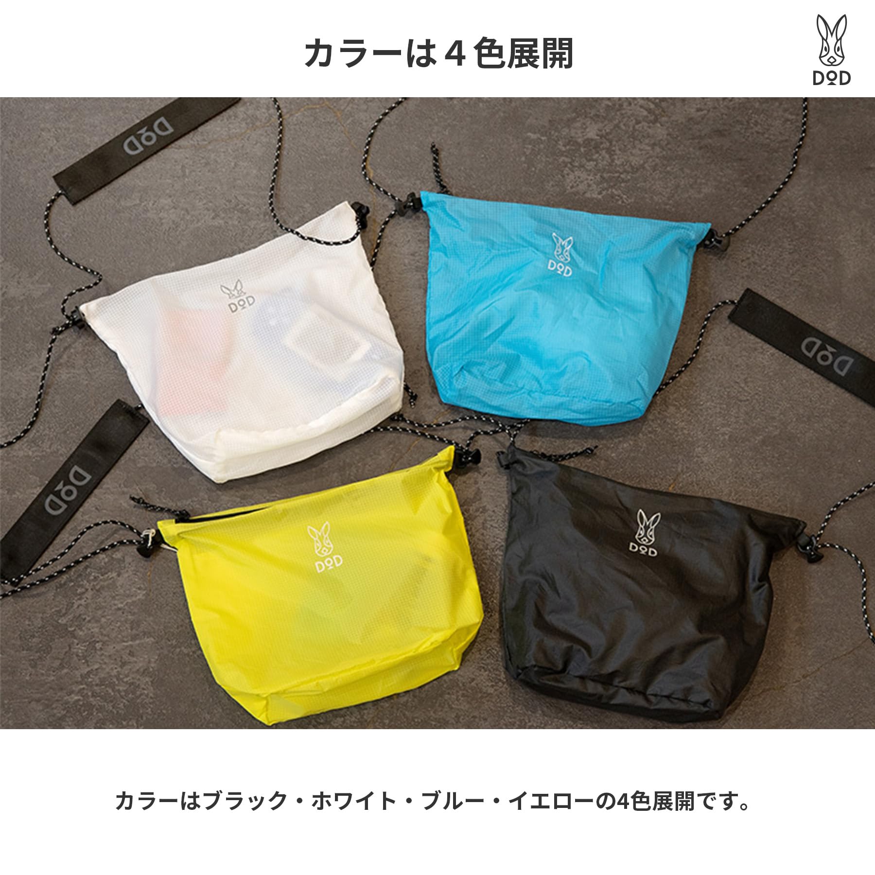 DOD(ディーオーディー) フッカルトート 3way ポケッタブル 収納 トートバッグ 軽量 コンパクト ライトウェイト フェス アウトドア BA124-WH/BL/BK/YL