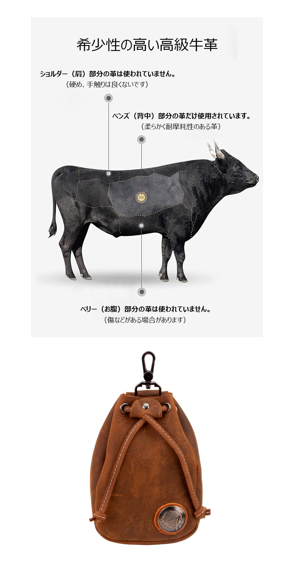 【新着商品】Whatna天 然 厚 手 牛革 小銭入れ コインケース メンズ レディース 2way巾着袋 ミニサコッシュ カラビナポーチ ベルトループ ミニウエストバッグポーチ 本革6.5インチiphoneを収納可 イヤホン収納ケース カラビナ付き (黑) | allureshop