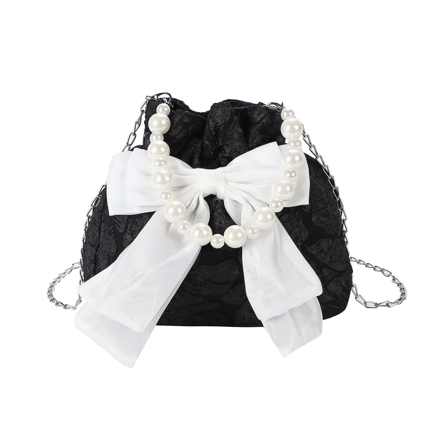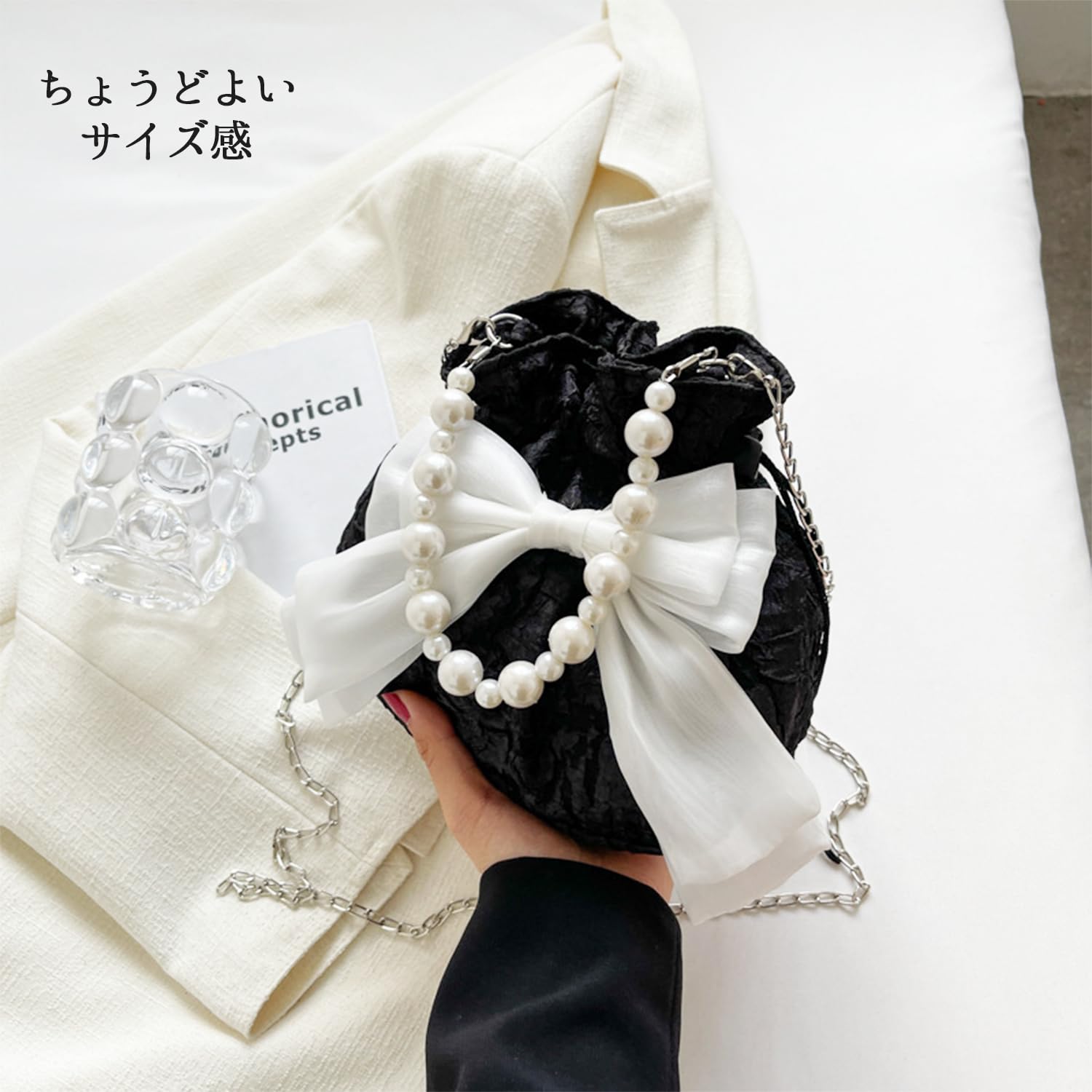 [Lapimou] 巾着ショルダーバッグ レディース パーティー パールバッグ ハンドバッグ ポシェット 浴衣 巾着ポーチ リボン 小さめ おしゃれ かわいい 成人式 ドレス 和装 トレンド