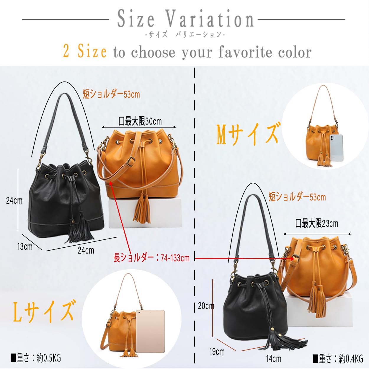 [AKIYAMA] レディース 巾着バッグ 本革 2WAY ショルダーバッグ 結婚式 パーティー シンプル 大容量 Lサイズ 2色