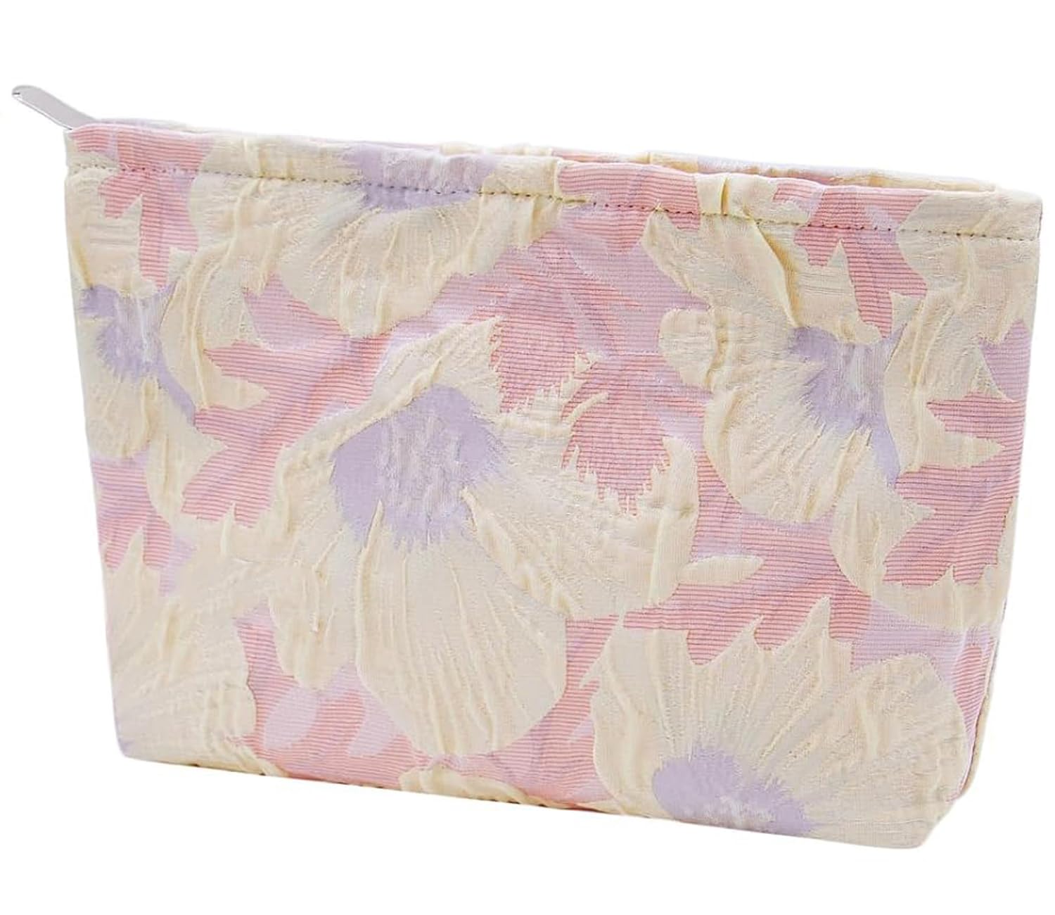 化粧品ポーチ レディース 大容量 ボタニカルフラワーがま口ポーチ 化粧ポーチ メイクポーチ コスメポーチ 花柄 収納ポーチ かわいい 可愛い おしゃれ 軽量 持ち運び 旅行用 (B light pink)