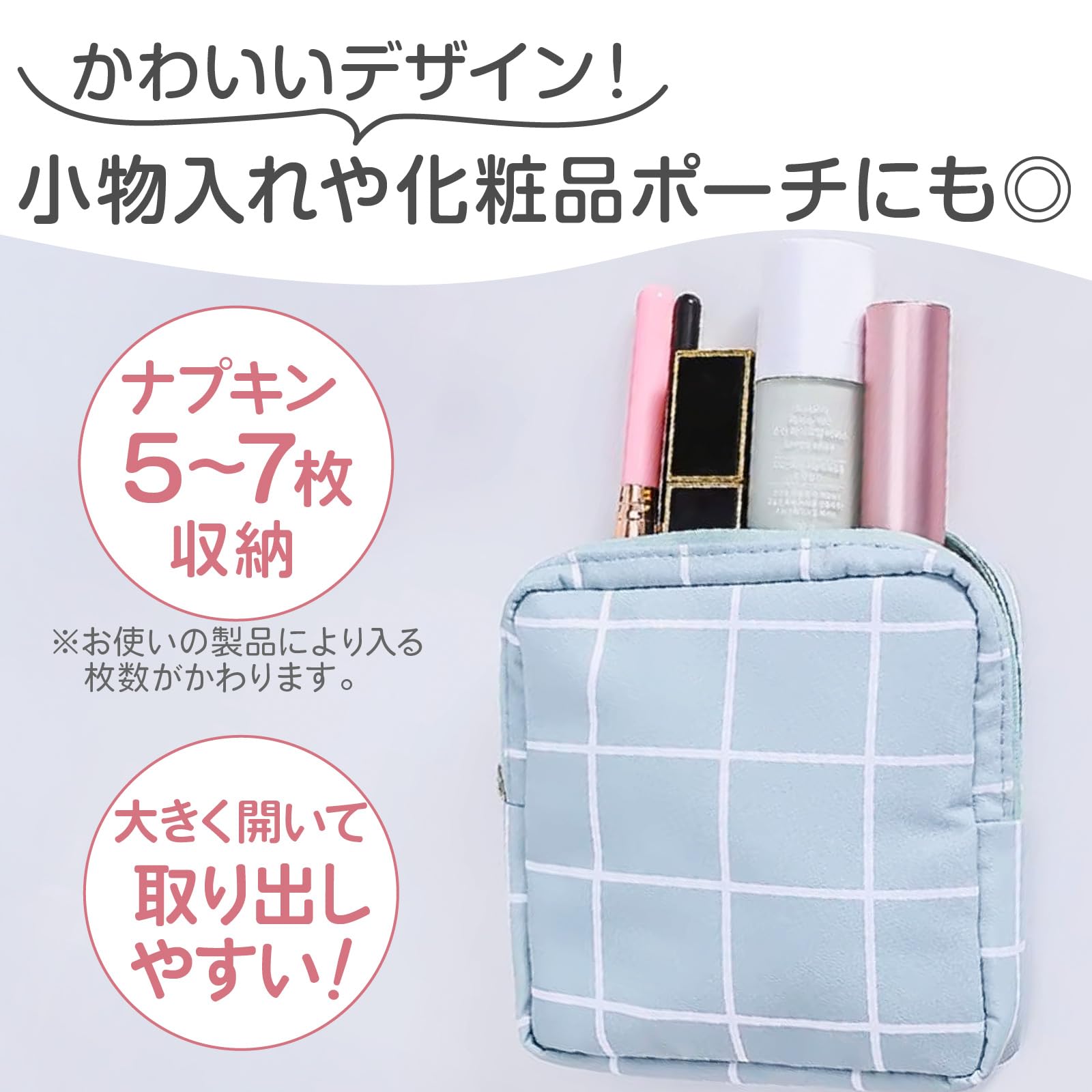 コンパクトなサイズで、バッグの中で場所を取らず、中身が見やすいのもポイント。 毎日の生活に少しの可愛さをプラスしませんか?お手入れも簡単なので、いつでも清潔感をキープできます。 【サイズ】13cm×13cm×3cm 1日分(5枚~7枚)収納