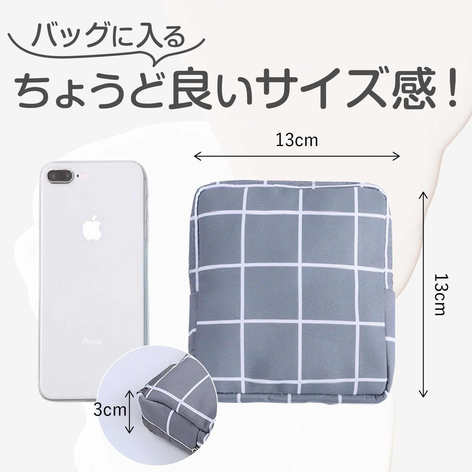 シンプルで可愛らしいデザインが魅力的なサニタリーポーチです。豊富なデザインからあなたのお気に入りがきっと見つかります。不安定な時でも、ほっこり癒される生理用ポーチです。 おしゃれで機能的なサニタリーポーチを手に入れて、日々のルーチンをもっと楽しく、もっと快適に