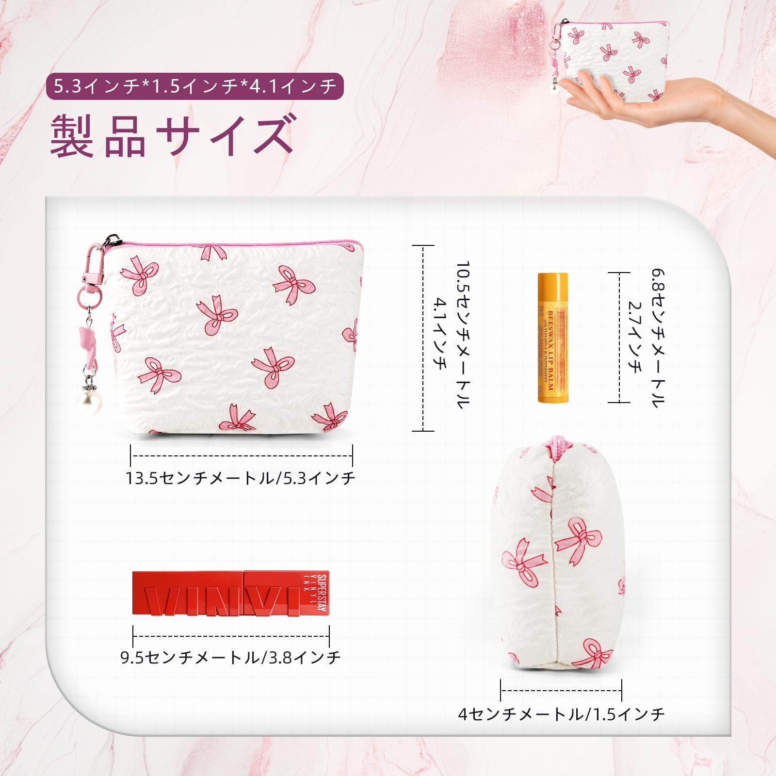 サニタリーポーチ小型 生理用サニタリーポーチ 大人 化粧ポーチ キーホルダー付き 持ち運びに便利 多機能 旅行用品のメイクポーチ 蝶结び柄