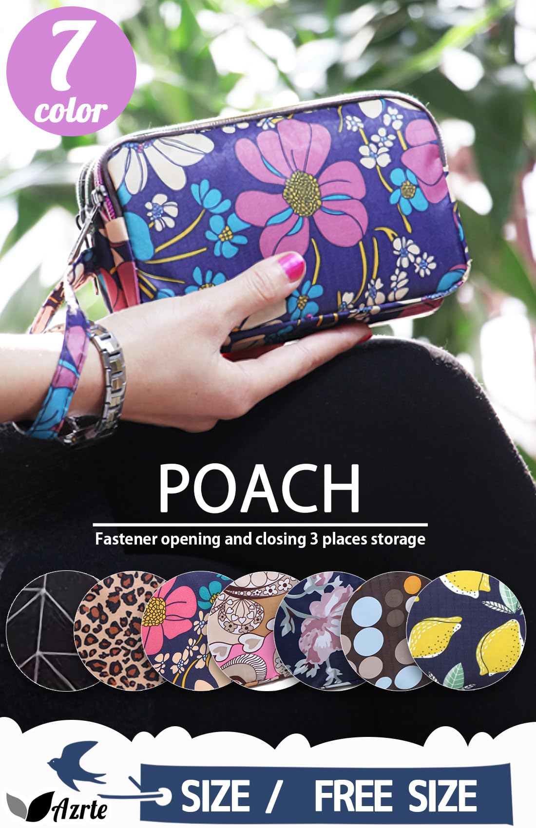 メイク道具等だけでなくガジェットケースや文具入れ、ハンカチ、マスクケース、文具入れにも。落下防止のストラップ付で使いやすさ抜群です。