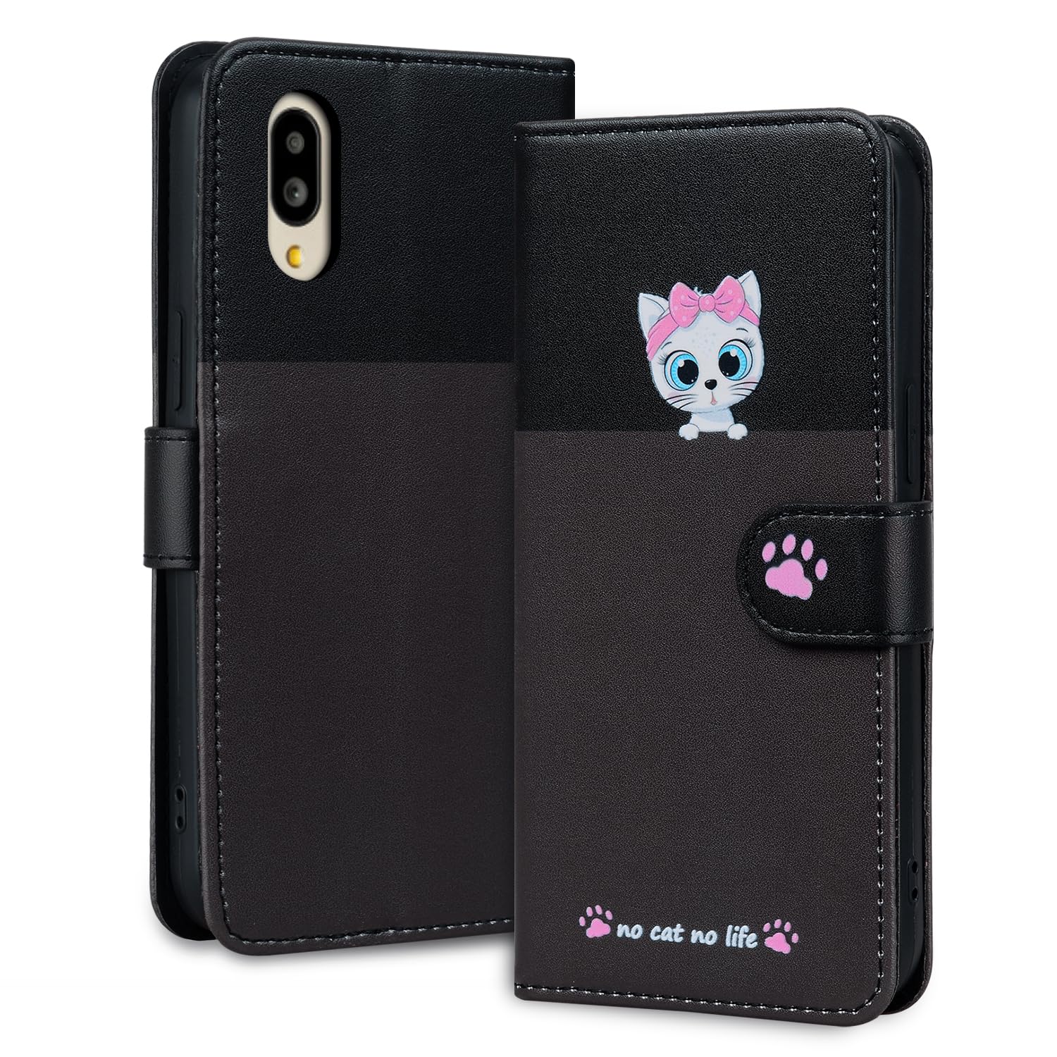 シンプルスマホ7/シンプルスマホ6 ケース 手帳型 おしゃれ simple sumaho6 A201SH/BASIO active SHG09/Basio active2 SHG12 ケース 手帳型 耐衝撃PUレザー シンプルスマホ6 A201SH ケース 手帳型 かわいい子猫犬柄 Simple Sumaho6 手帳型 スマホケース カバー カード収納 マグネット式 スタンド機能【ダークグレー】