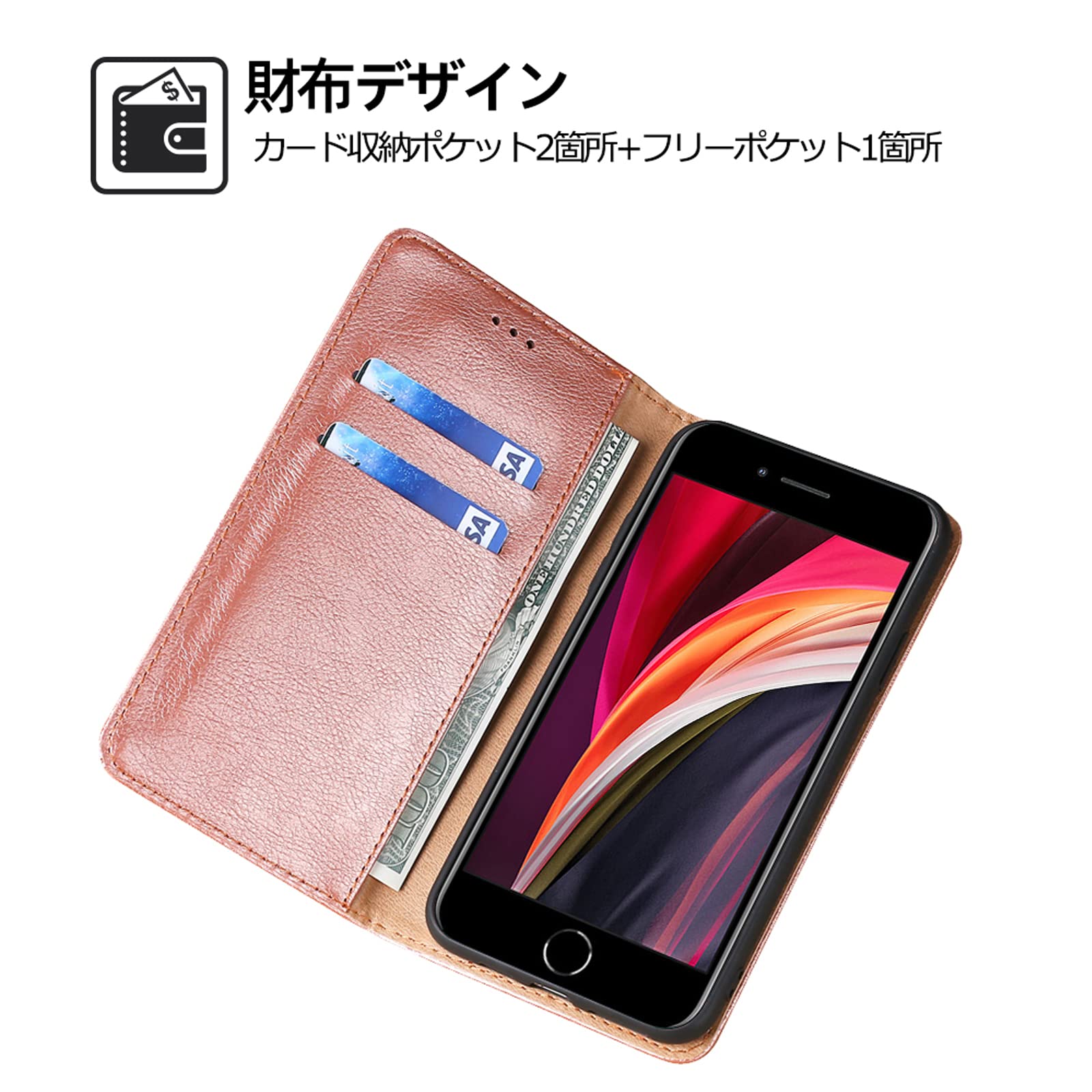 【特価商品】iPhone SE ケース 第2世代 第3世代 iphone8/7 ケース 手帳型 スマホケース 携帯カバー PUレザー カード収納ケース マグネット式 スタンド機能アイフォンse 4.7インチ対応 360度保護 PinLiSheng (ライトローズゴールド iPhone SE2 iPhone SE3 iPhone8 iPhone7) | allureshop