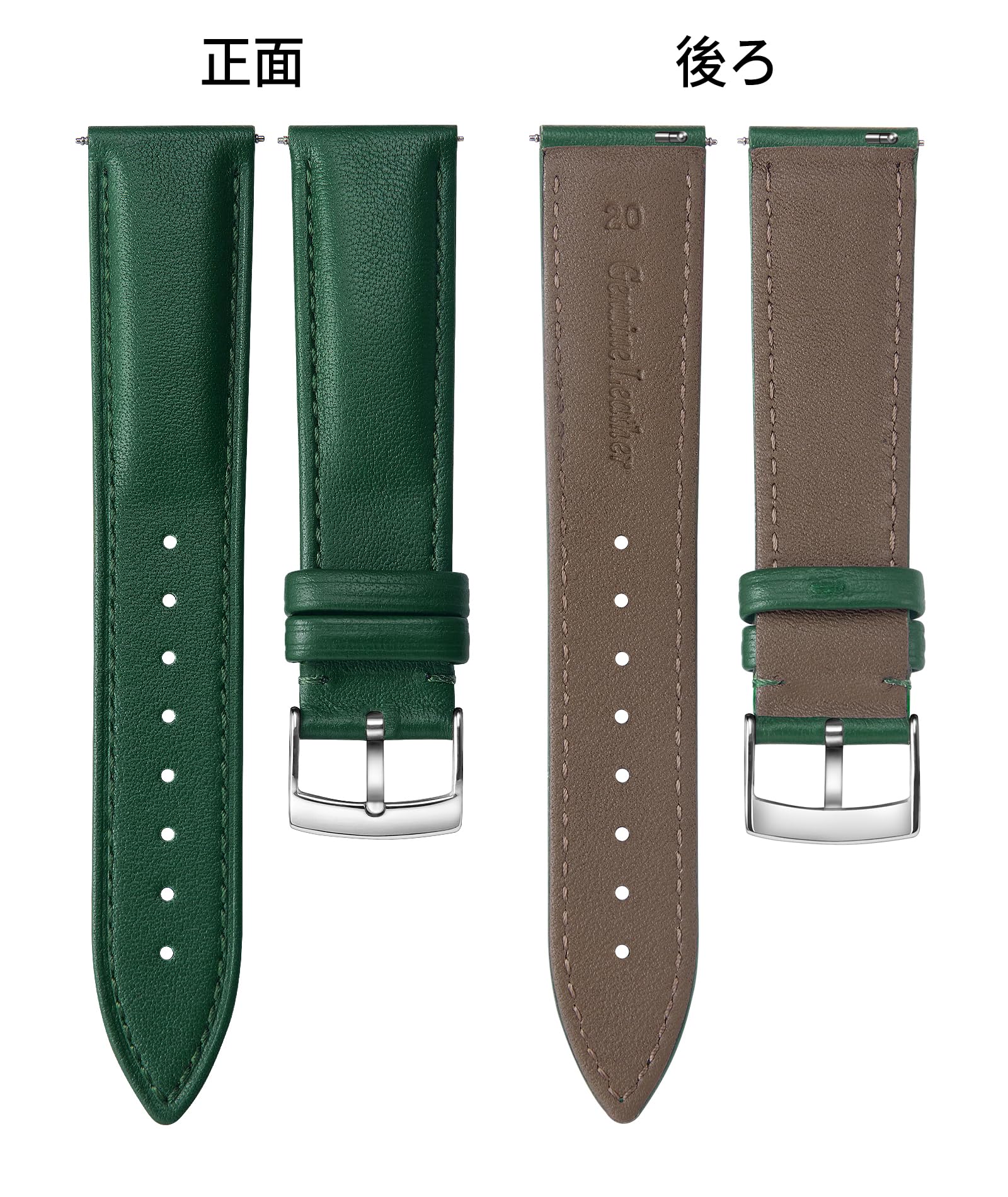 【特価セール】[BINLUN] 革時計ベルト クイックリリース レザー腕時計バンド 複数の色ウォッチバンド スタイリッシュ交換ベルト 柔らかい 通気性 男女兼用(18mmグリーン) | allureshop
