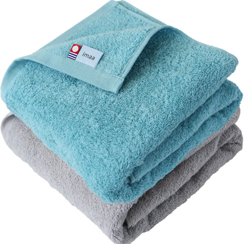imaa(アイマ) 今治タオル 認定 バスタオル ふわふわ 薄手 吸水速乾 日本製 綿100% 真空圧縮パック スカイブルー×グレー