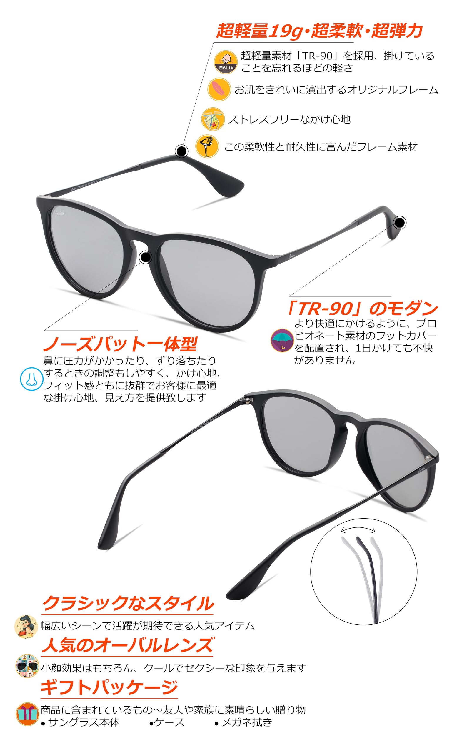 [Berikin] サングラス 超軽量19g 調光 偏光 薄色レンズ メンズ レディース UV400 UVカット 紫外線カット エリカ sunglass for men women