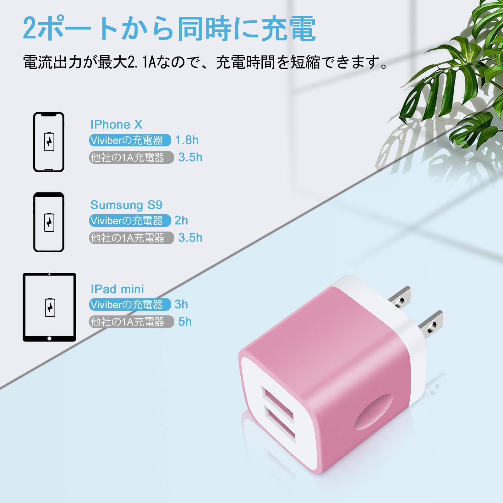 Viviber Andriod 充電器 PSE認証済 タイプC 急速充電ケーブル 1本付き【0.9M】 USB2ポート ACアダプター iPhone 16 Type-C USBケーブル 携帯充電器 コンセント アンドロイド スマホ充電器 軽量 コンパクト テレワーク 海外 iPhone 15対応