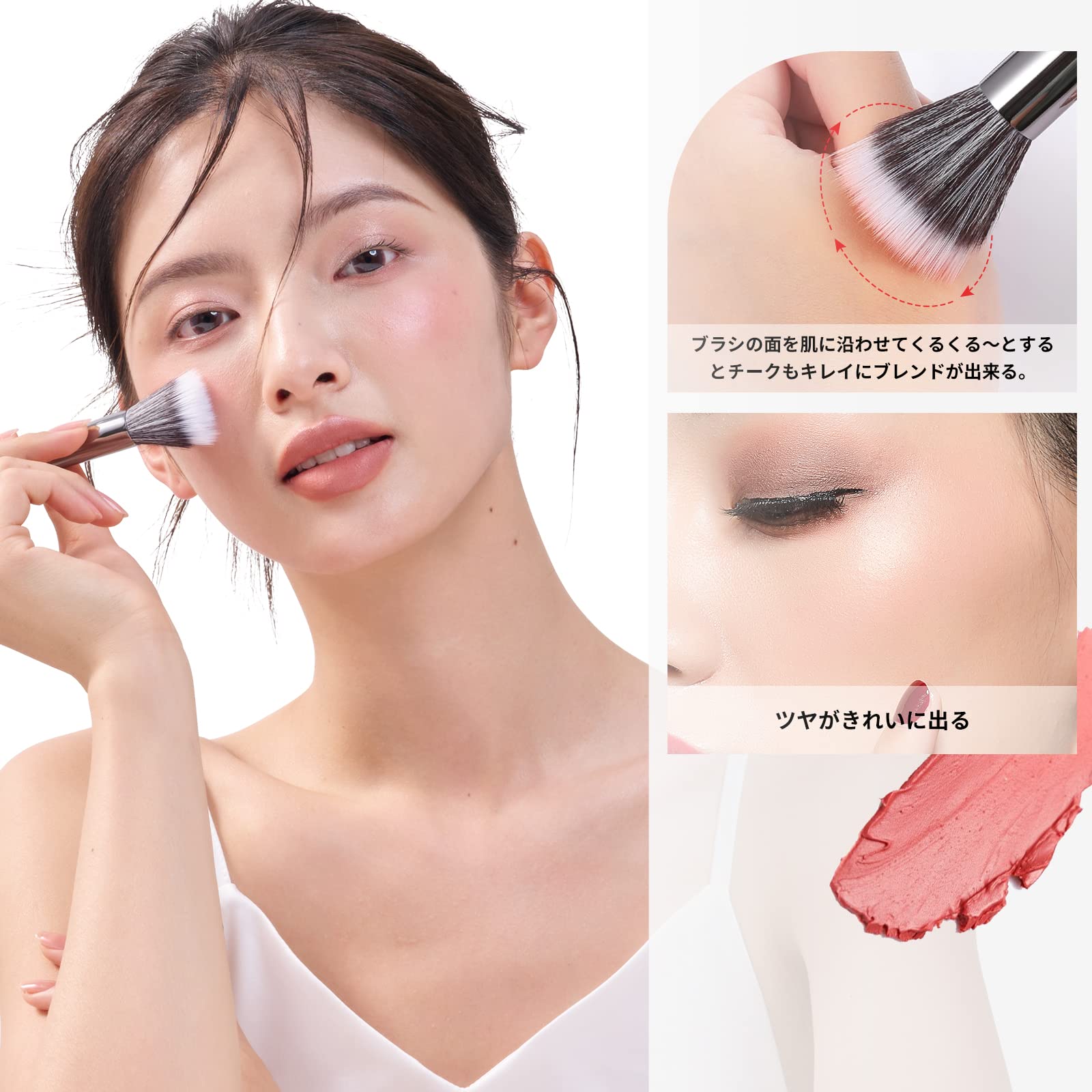 【均一ぼかすチークブラシ】このチークブラシは、毛先を2層に分けることで色のノリすぎを防ぎ、より自然で均一なぼかしを実現してくれます。ムラがないようにキレイに付ける、透明感のある血色のあるチークを作り出せます。