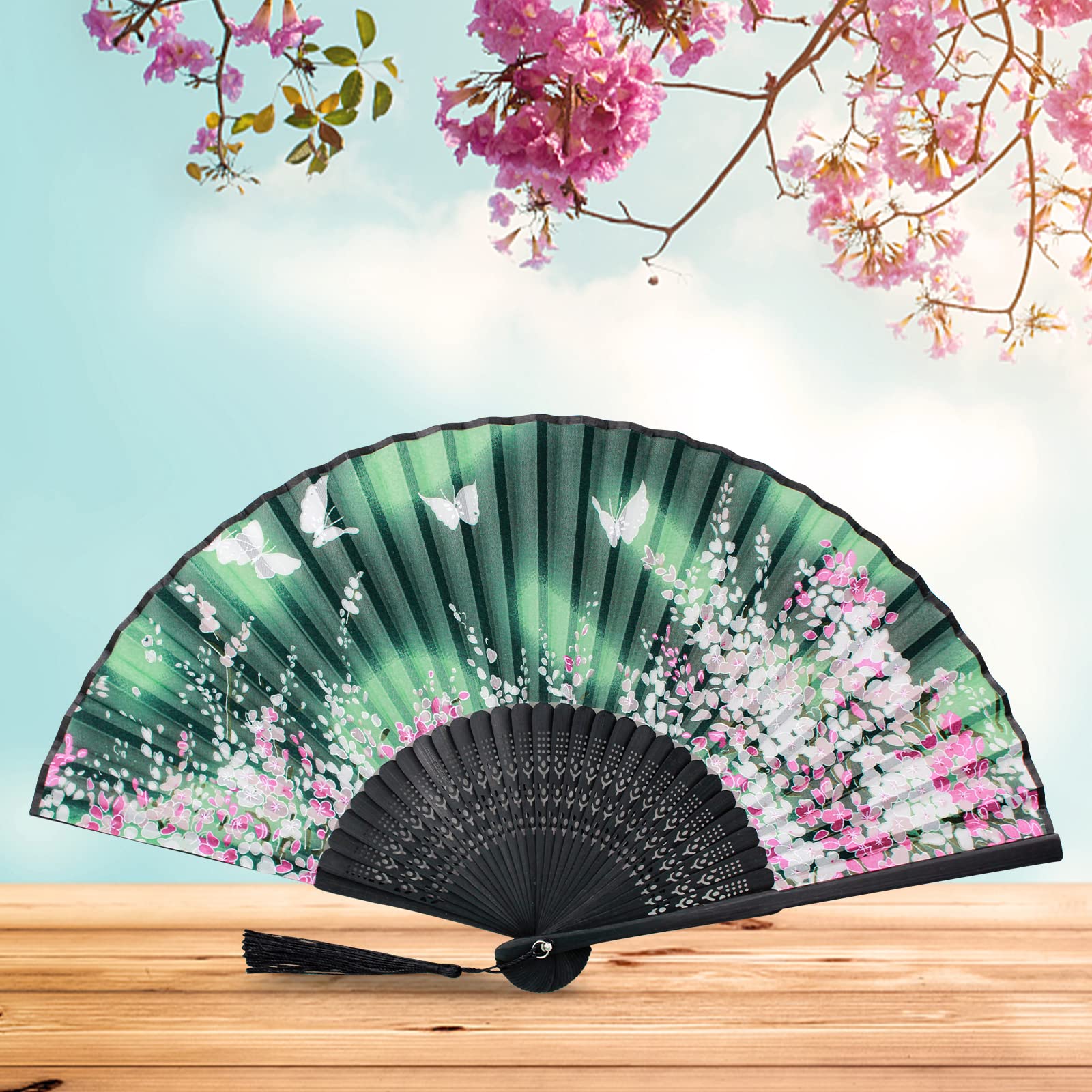 [boshiho] 扇子 メンズ レディース おしゃれ 和風 竹製 シルク 正絹 綺麗 花柄 蝶々 桜柄 扇子袋 和小物 お祭り お土産 プレゼント