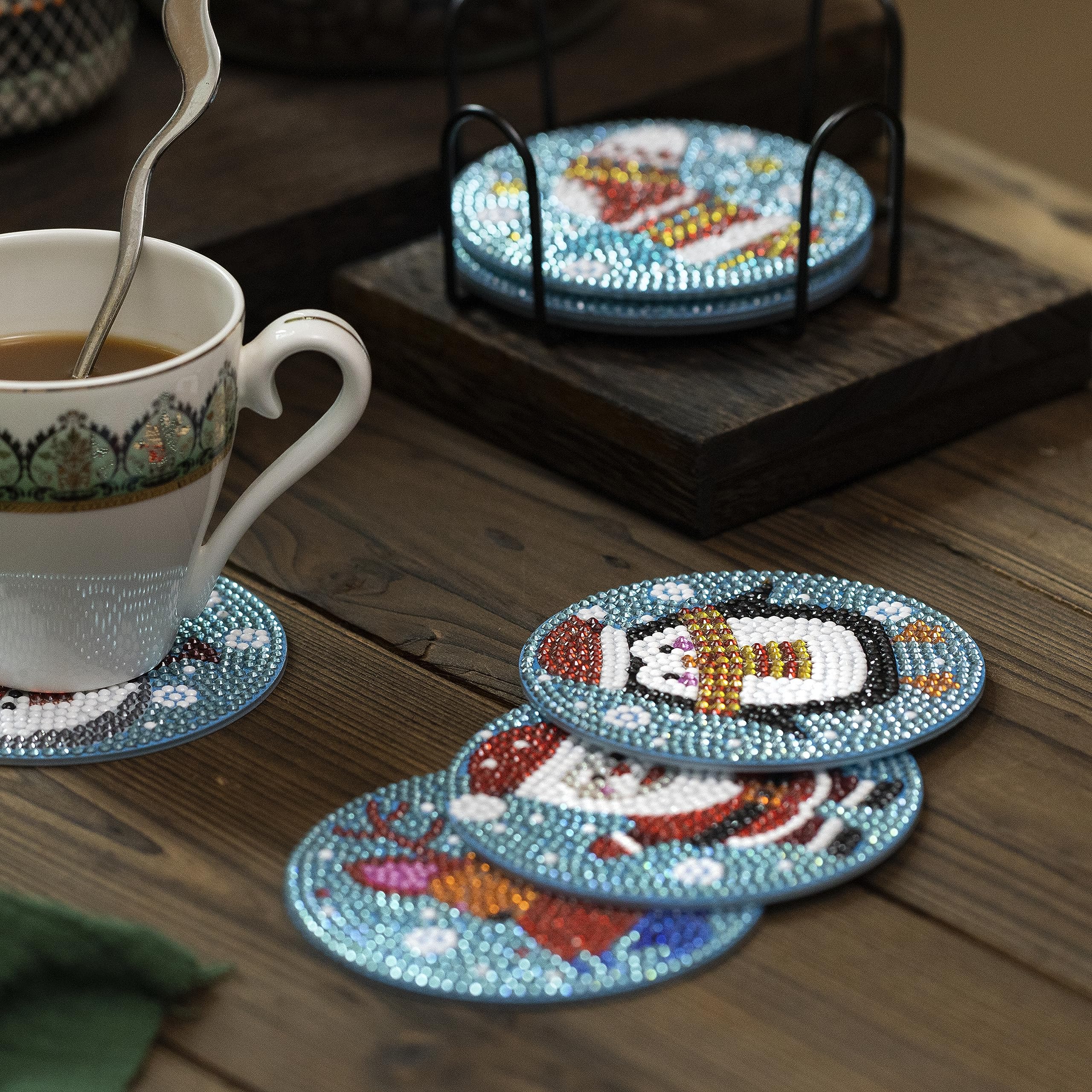 【在庫セール】[Ebherys]8ピースダイヤモンドアートコースターキットダイヤモンドペインティングDIYキット5Dダイヤモンド+垂直コースターラック+収納ラック初心者装飾大人と子供向けの手作り工芸品 (蓝色圣诞) | allureshop
