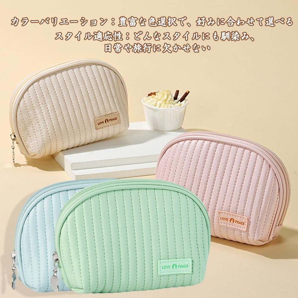 【ポーチ 小さめ 可愛い】このポーチはコンパクトでスペースを取らず、日常の通勤・買い物・旅行にも持ち運びやすい。スーツケースやバッグに収納しやすく、小物や化粧品をきちんと整理できます。 【高品質PU素材】この小さな化粧ポーチは、上質 PU 素材で作られ、クリーム色の皮革風質感があり手触り良好。防水・耐磨耗性があり水拭きで簡単に清掃でき長期使用に耐える。金属ジッパーと美しいジッパープルが特徴で、スムーズに開閉し引っかからない。 【可愛いデザイン】このポーチは、可愛い小さめのデザインで、半円形の貝殻型の独特な形状をしています。女性に人気のデザインで、色調がマッチングしやすく、多種多様な色から選べます。どんなスタイルにも合い、日常や旅行に便利なアイテムです。 【大きな開口部】化粧ポーチは広開口のジッパーを採用。中身が一目で分かり、化粧品や小物の出し入れがスムーズ。朝の化粧や旅行時のアイテム取出しに便利で、時間を有効に活用できます。 【多用途】女性用ポーチで、化粧品・スキンケア・メイク道具はもちろん、アクセサリー・生理用品・小物まで収納可能。軽量で持ち運びやすく、日常・旅行・出勤など幅広いシーンで活躍します。
