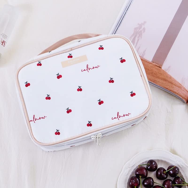 Collicarpo 化粧ポーチ 多機能 メイクポーチ コスメポーチ コンパクト アイシャドー ブラシ入れ付き バニティ 化粧道具入れ プレゼント(さくらんぼ)