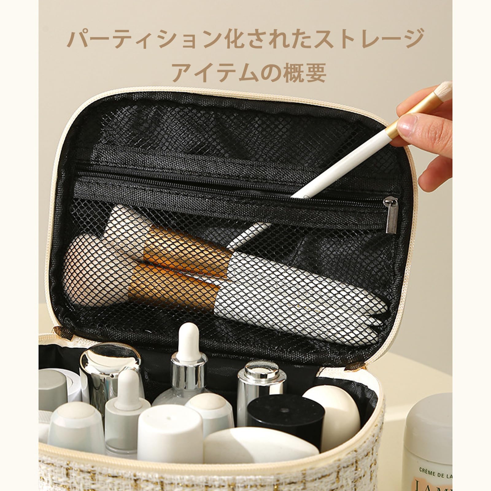 【快適な持ち運び】手提げのデザインは、メイクポーチを快適に持ち運ぶことができます。旅行や出張の際にも便利です。