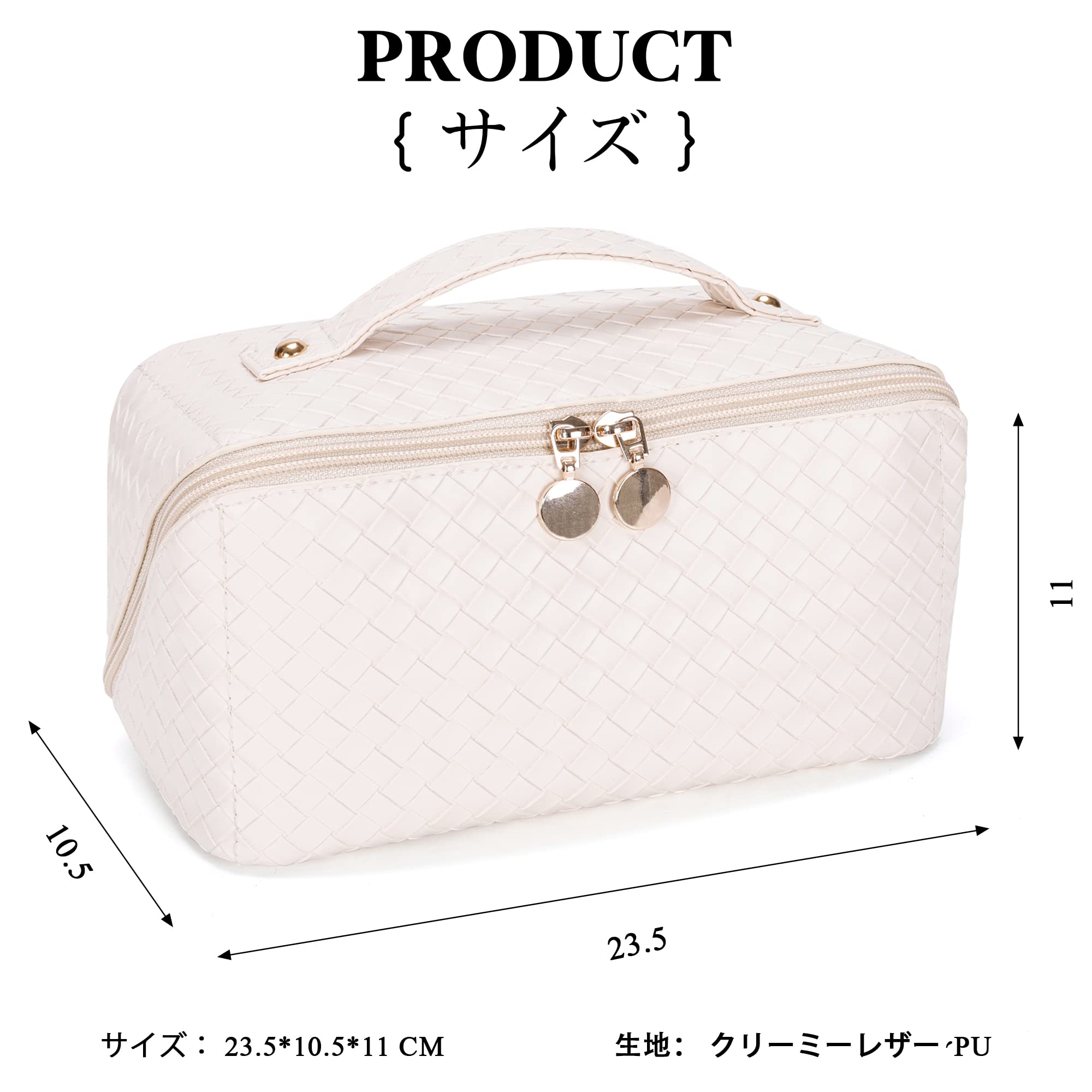 NEOVIVA かわいい 大容量 メイクポーチ - トラベル用 多機能 コスメポーチ バッグ(アイボリーホワイト)