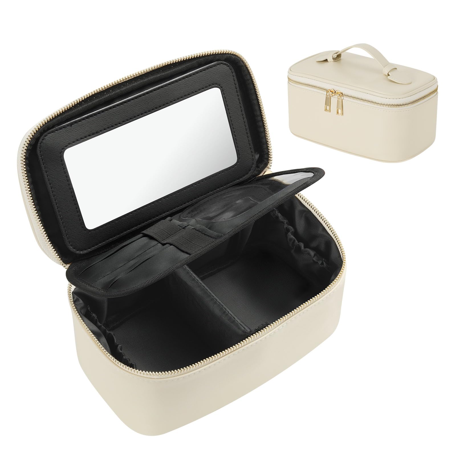 【新着商品】化粧ポーチ ATiC 大容量収納 メイクポーチ 取り外せるミラ付き バニティータイプ コスメティックバッグ 持ち運び 小物入れ 旅行/出張用 プチギフト プレゼント Beige | allureshop