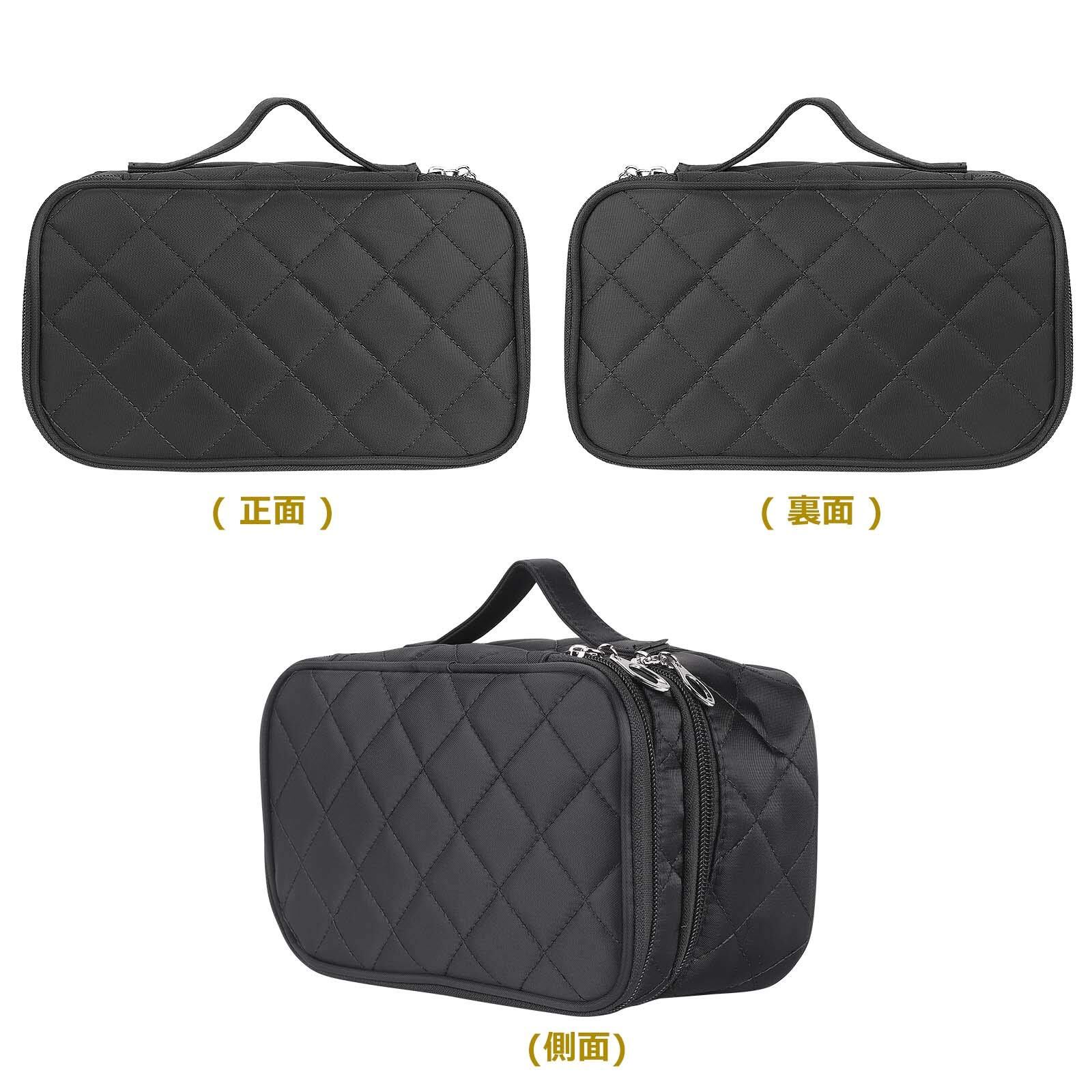 【大容量収納】: 二つの大きなポケットに分かれているダブルジッパータイプのメイクポーチ。1階:ファスナーポケット1個、メッシュポケット1個、高さ1.5cm 2階:ストレッチネット、空きフロア、5cm高さの小さなサイズ、7cm高さの大きなサイズ。化粧水、アクセサリー、メイクブラシホルダー、口紅、香水、ネイル用品などの小物収納にも便利です。旅行用化粧品だけでなく、ヘッドフォン、充電器、充電宝物などのような電子アクセサリーの収納にも。