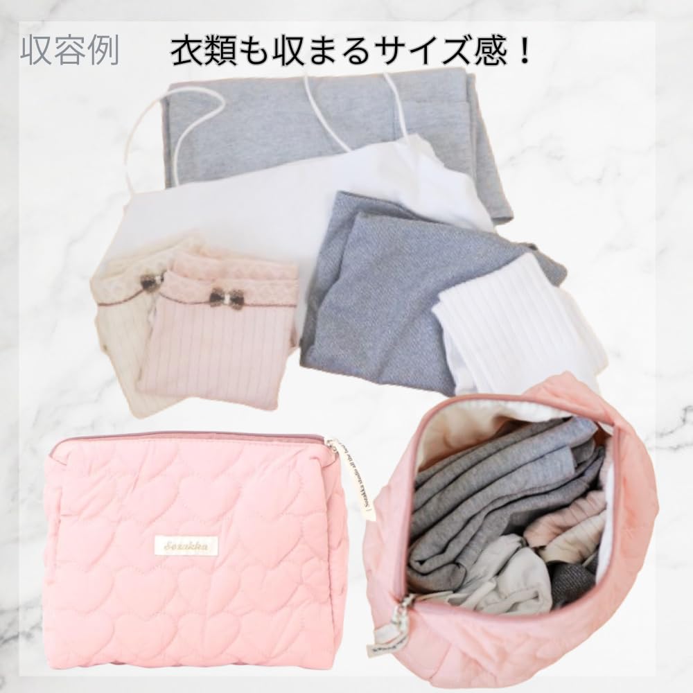 【大容量/手洗い可◎/シャーベットカラーがかわいいマルチポーチ/化粧ポーチ】ハートキルティングふっくら大きめポーチ。
