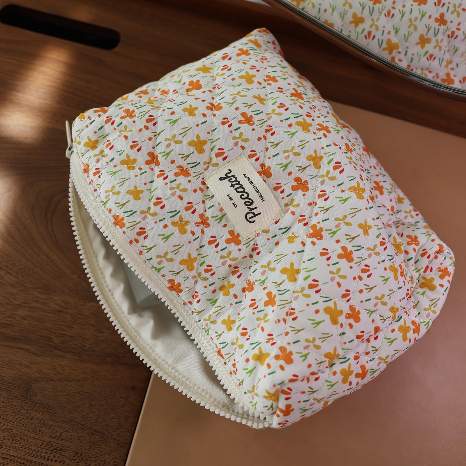 開口部が大きく開くジッパーとキルティングのデザインが、雲のようにふわふわとしたトーストのように柔らかな化粧ポーチをより特別なものにしています。コットン生地は自在に折りたたむことができ、シワがつきにくいのが特徴です。大きめにデザインしており、化粧品だけでなく、赤ちゃんのおむつなどの雑貨も収納できます。