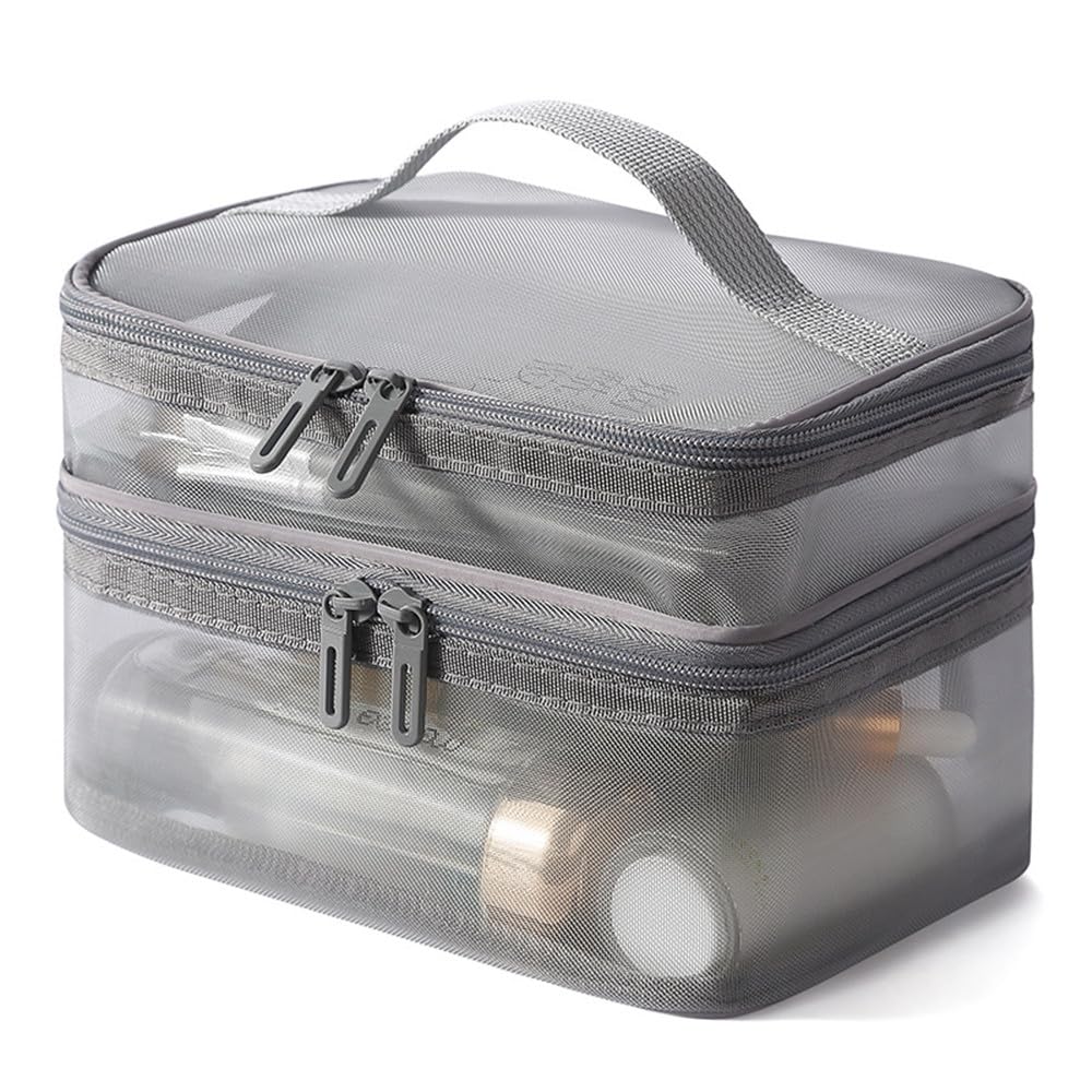 FLORPERRY 化粧ポーチ メッシュ 収納バッグ メイクボックス 大容量 コスメポーチ メイクポーチ 化粧品入れ 化粧バッグ トイレタリーバッグ 洗面バッグ 超軽量 トラベルポーチ 出張 旅行 コスメボックス バニティポーチ グレー-二層