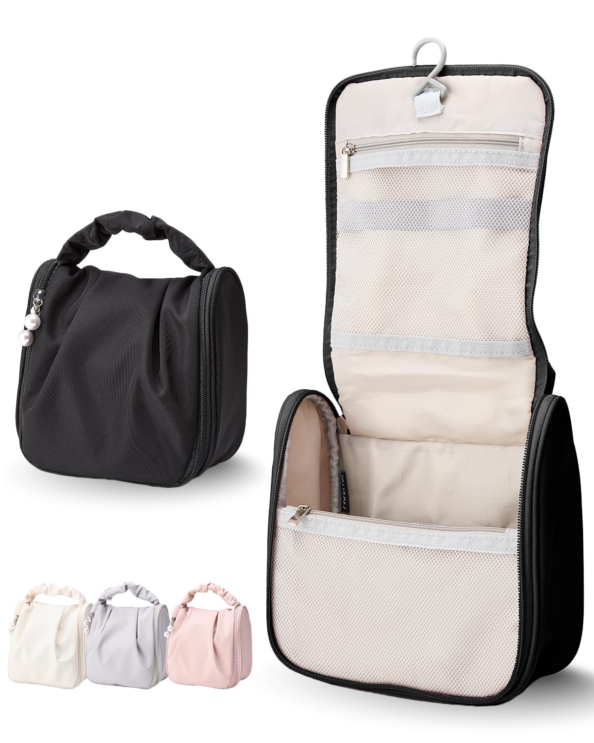 化粧ポーチ コスメポーチ メイクポーチ 大容量【Poco'ce掲載】【日常でも旅行でも活躍するポーチ】トラベルポーチ 吊り下げ 旅行 ポーチ 小物入れ 洗面用具 大きめ 撥水 軽量 おしゃれ 可愛い トラベル 出張 持ち運び 縦型 自立 (ブラック)