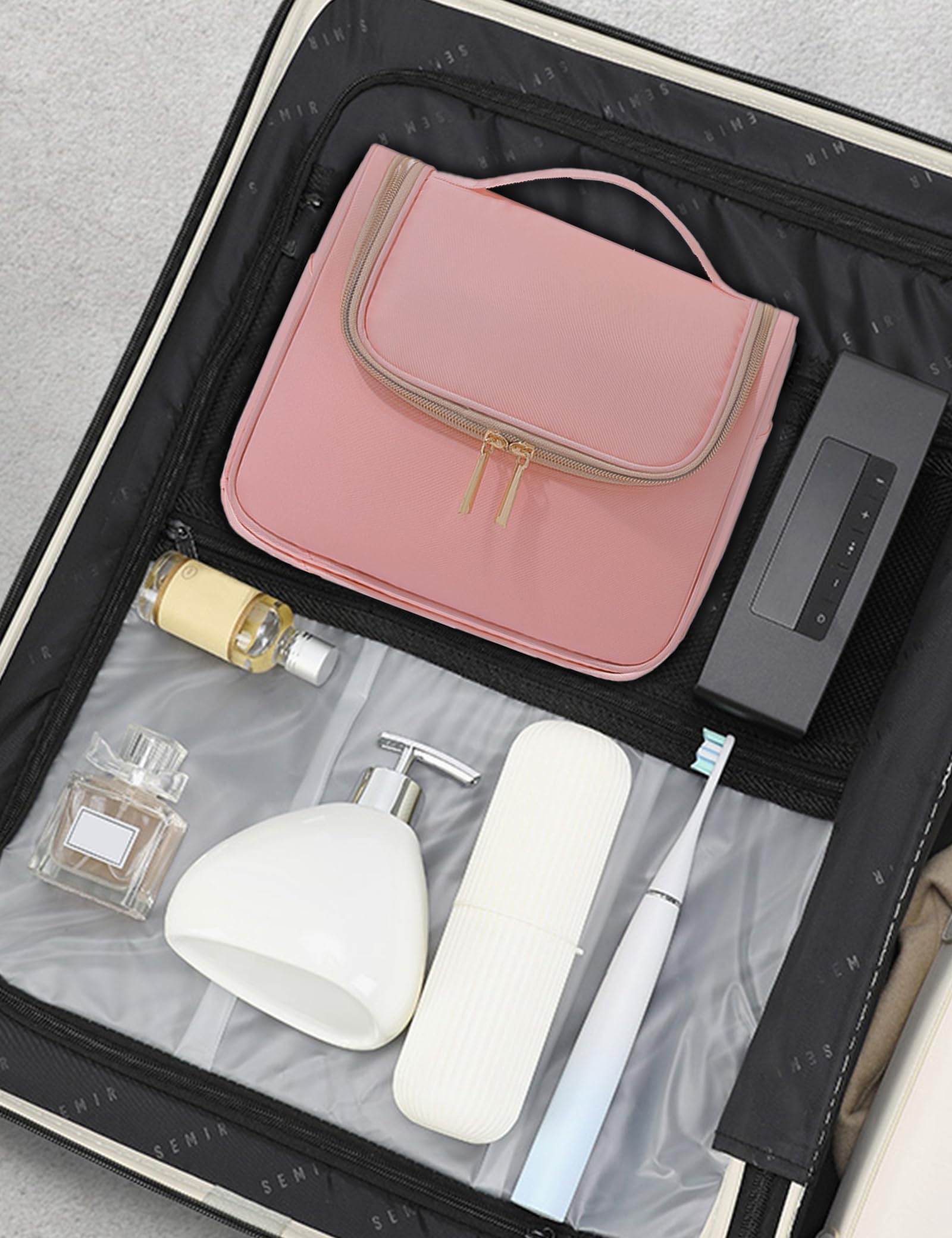 ALLMIRA 化粧ポーチ トラベルポーチ メイクポーチ 大容量 コスメポーチ 化粧水 旅行 化粧品 吊り下げ 大きめ パッキング 旅行用ポーチ 化粧品入れ 洗面用具 ポーチ トイレタリーバッグ (ピンク