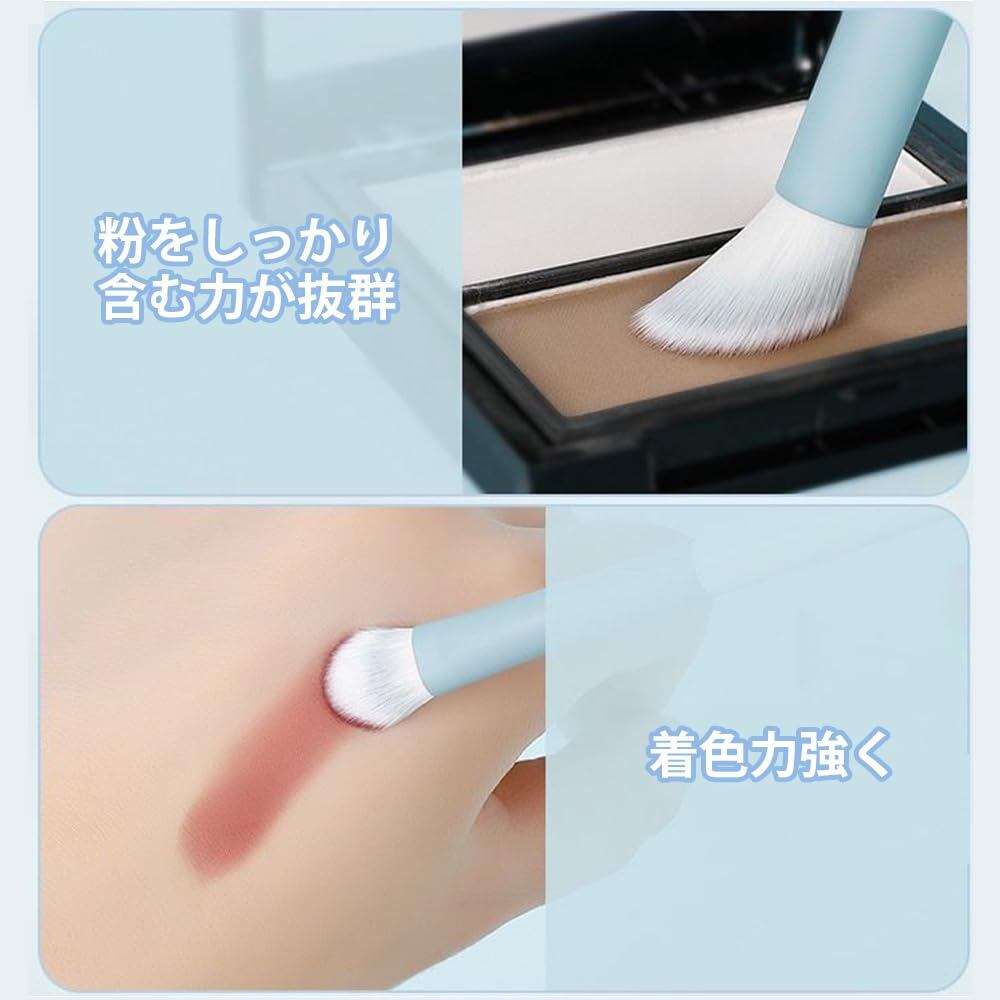 【質の高い素材】ブラシの毛は高品質な繊維毛を厳選し、柔らかく弾力性に富んでおり、密集した毛で粉をしっかり含む力が抜群で毛が落ちにくいです。
