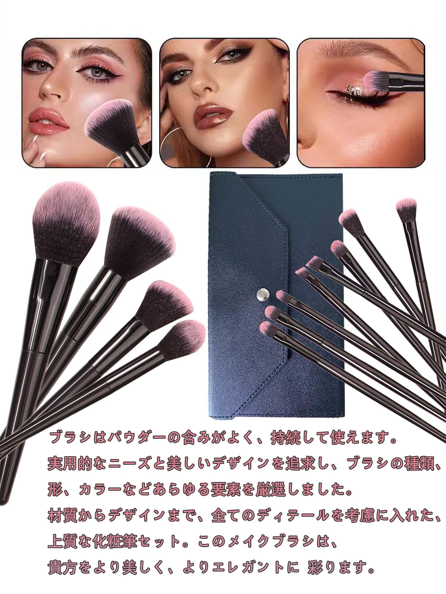 【メイクブラシセット】12本のメイクブラシセットには、パウダーブラシ、アイシャドウブラシ、コンシーラーブラシ、チークブラシ、眉ブラシ、リップブラシなどが含まれています、この一セットで十分、日常メイクからフルメイクまで、お化粧に必要な化粧筆をほぼ全てお入れしました。