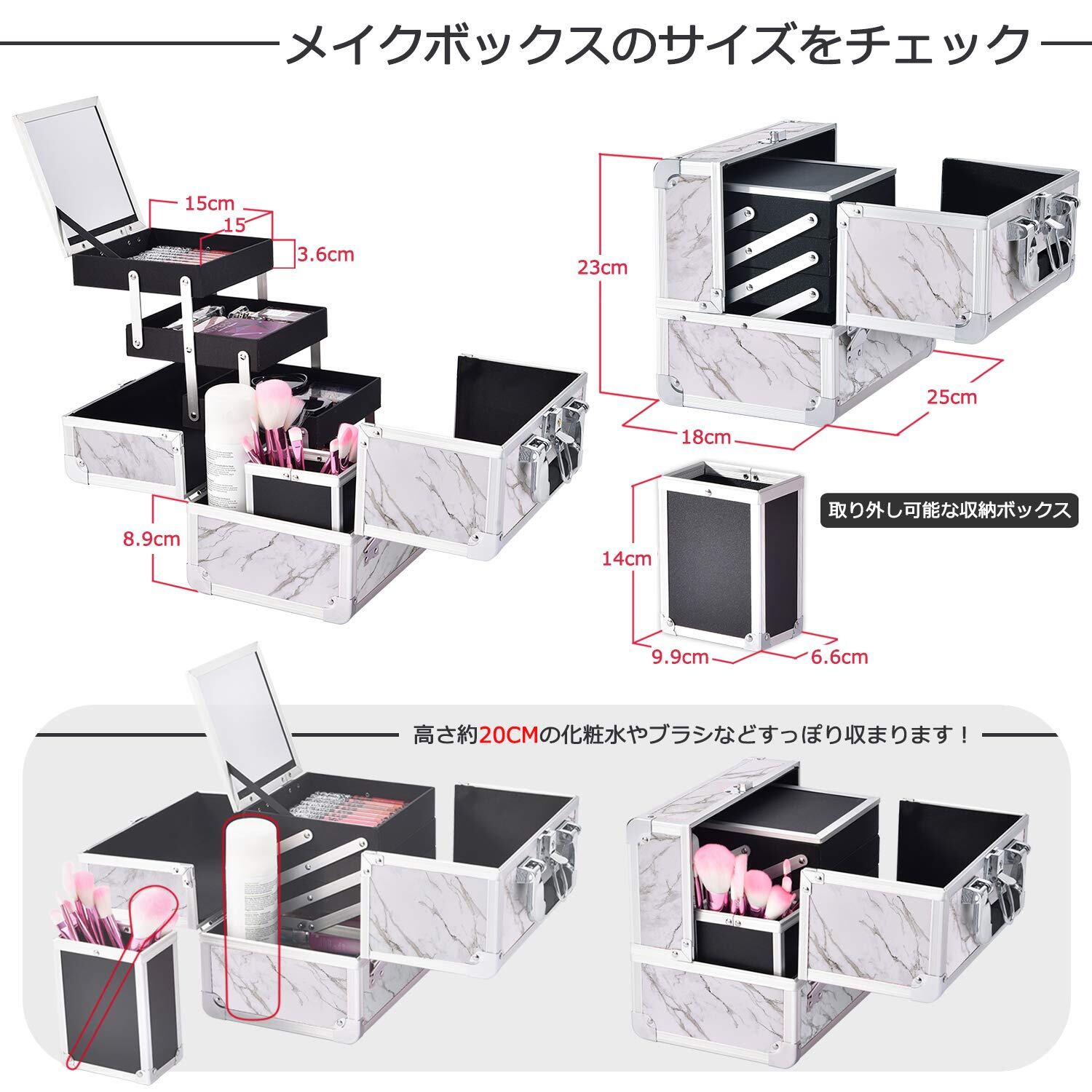【特価セール】Hapilife コスメ メイク ボックス 鏡付き 大容量 ブラシ立て 3段トレイ 化粧箱 化粧品 収納 メイクブラシケース 母の日のプレゼント (大理石柄-ホワイト) | allureshop