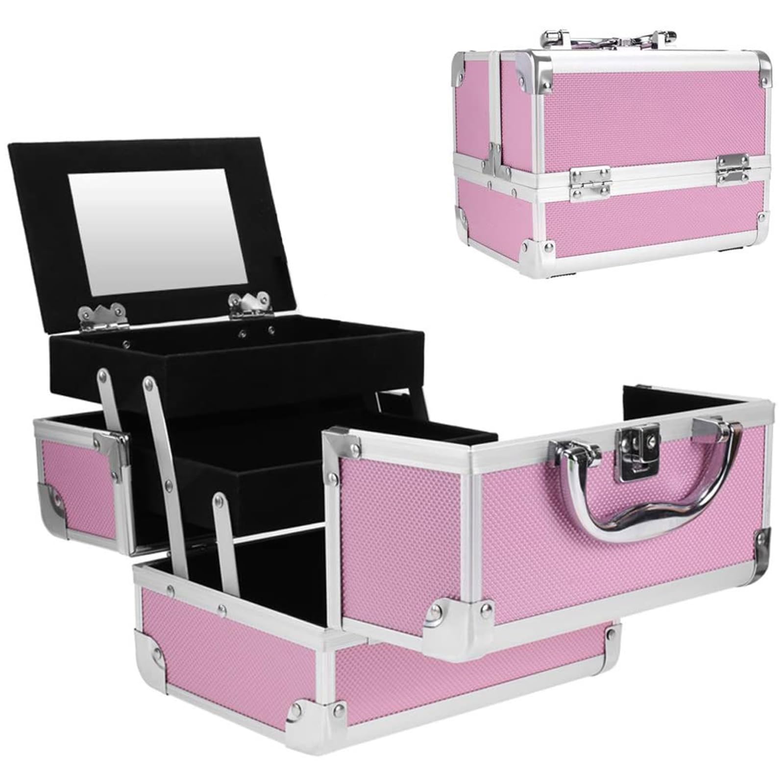 【素材】弊社のコスメケースはアルミニウム合金とプラスチック材料で作られており、純粋プラスチックよりも丈夫で耐久性があり、純アルミニウム合金よりも軽くて持ち運びに便利です。女性一人でも気軽に持ち運べます。