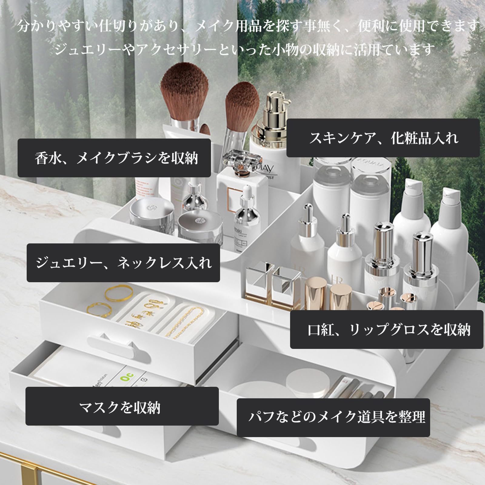 【在庫処分】化粧品収納ボックス 化粧品収納ラック 大容量 ペン立て 化粧品ケース メイクボックス コスメボックス 強い耐久性 整理簡単 引き出し小物入れ おしゃれ ジュエリーボックス 卓上 デスクオーガナイザー (ホワイト1) | allureshop
