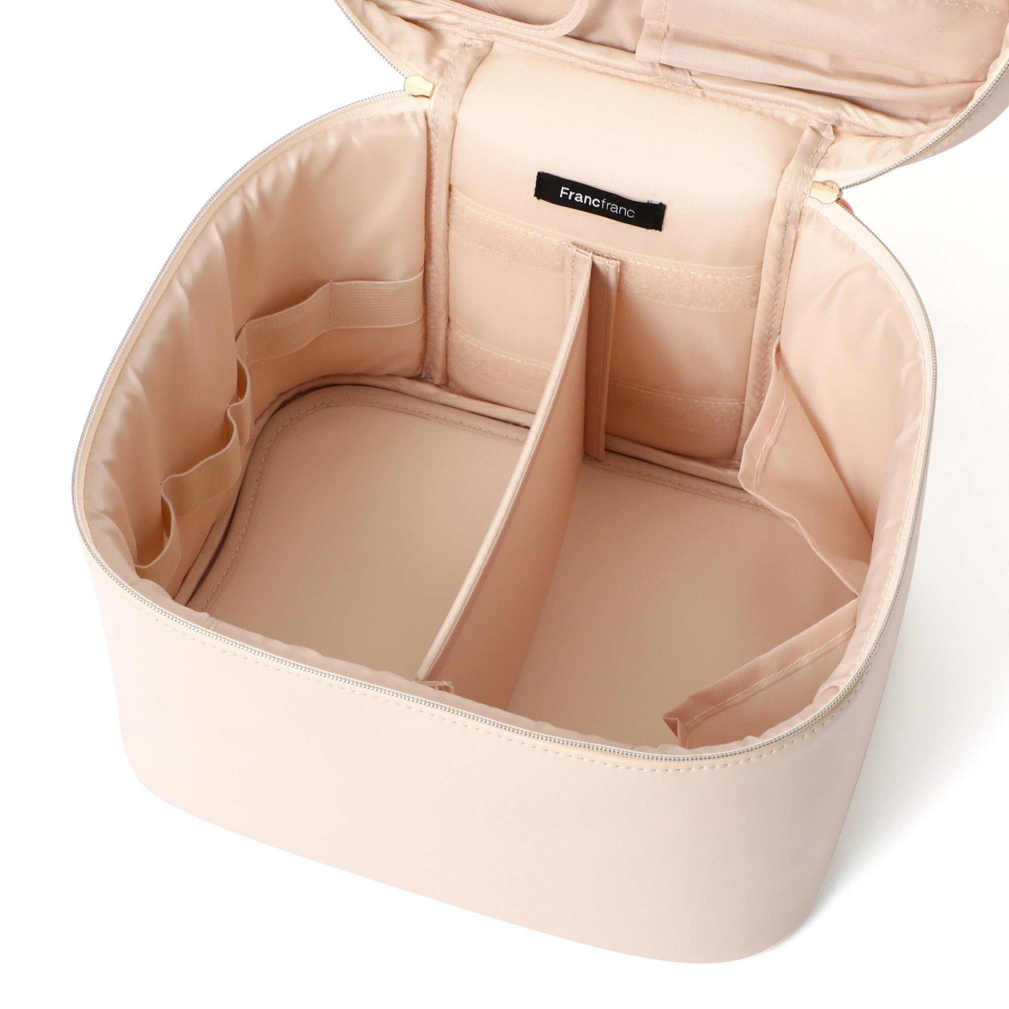 トレンド感たっぷりで個性的なメイク収納をお探しの方におすすめです。バニティLは長方形の大容量で、沢山のコスメをしっかり整理整頓できます。内側にはブラシホルダーやポケットがあり、取り外しが可能な仕切りも付いていて機能性も抜群です。