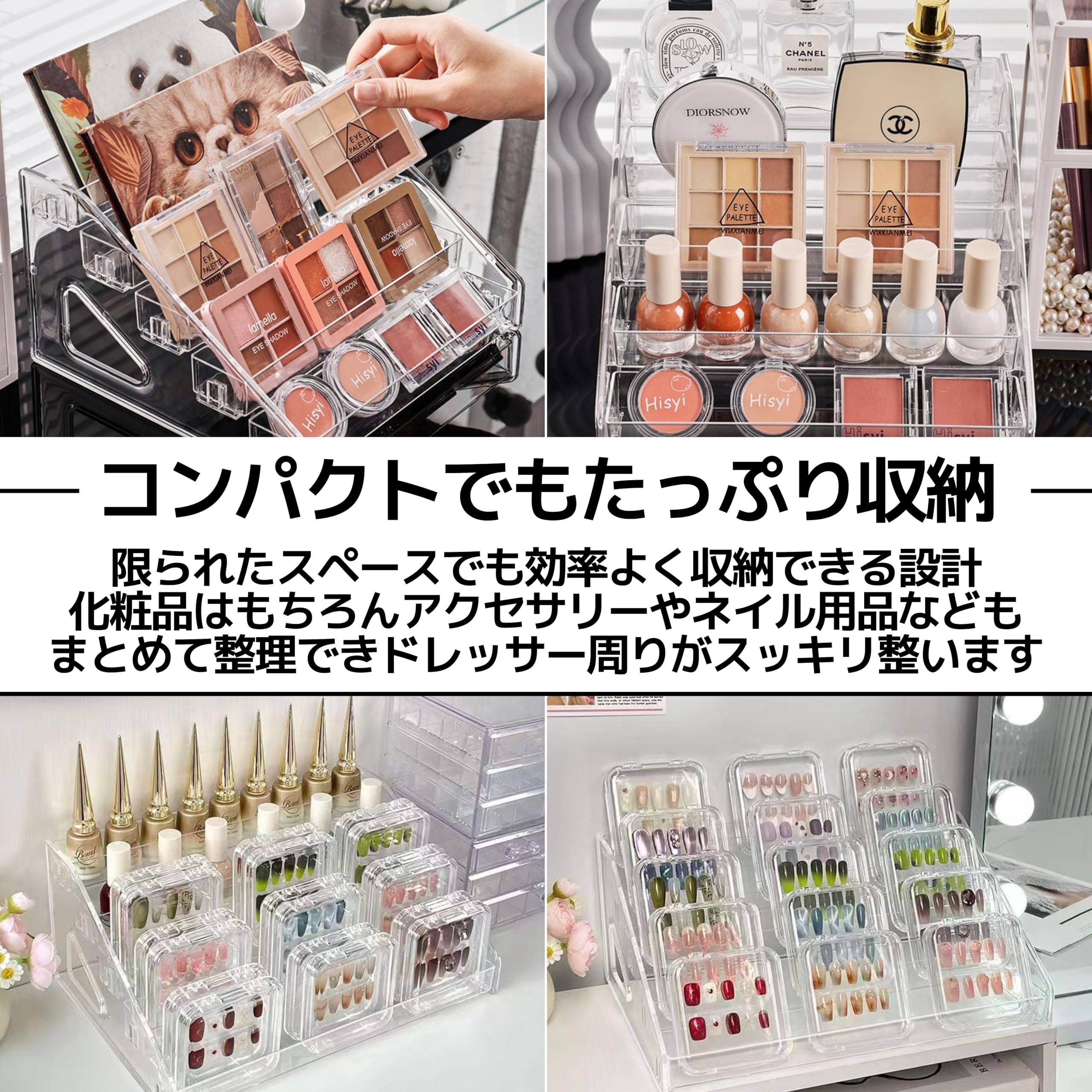 【コンパクトでもたっぷり収納】限られたスペースでも効率よく収納できる設計。化粧品はもちろん、アクセサリーやネイル用品などもまとめて整理でき、ドレッサー周りがスッキリ整います。