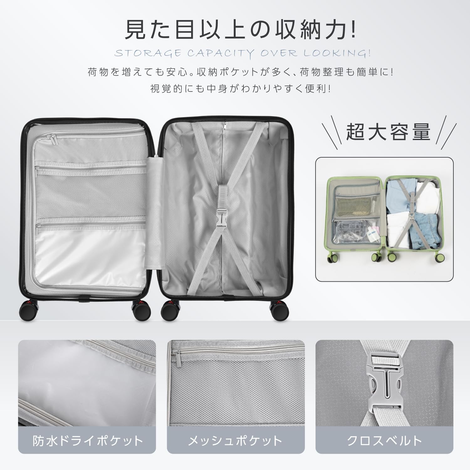 【大容量&多機能】内装に再生素材を使用しました。高品質裏地素材と両面のXバンド合わせて、荷物をスッキリ収納できます。便利な仕分けポケットで荷物を衛生的に整理できて、乾湿を分けて収納できます。インテリアは合理的な収納仕切りで、行きも帰りも楽になります。スーツケース 機内持ち込みでき、USB充電ポート付き、ドリンクホルダー&荷物フック付き、多機能なデザインと使いやすさが魅力です。