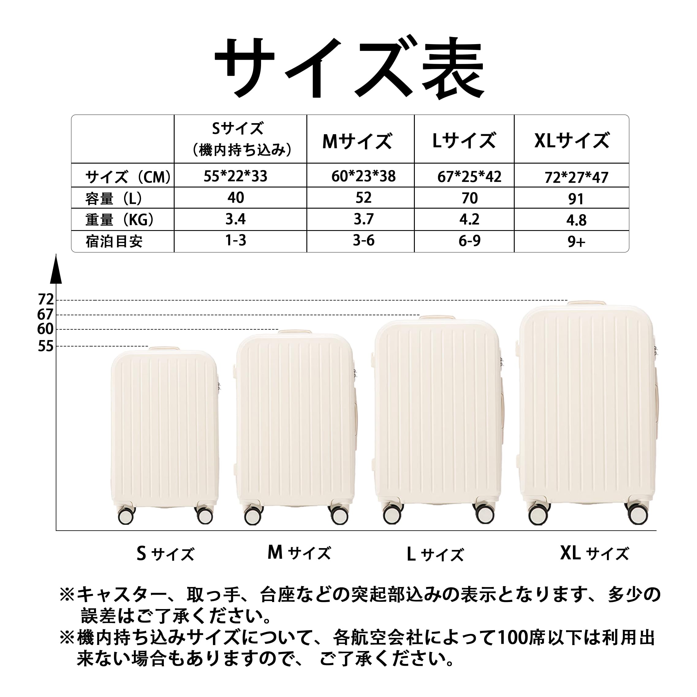 【2025初登場&超軽量】ABS樹脂+高耐衝撃性を持つPC素材で作られ、傷がつきにくくなります。本体は超軽量で、女性でも楽々に持ち出かける人気なスーツケースです。