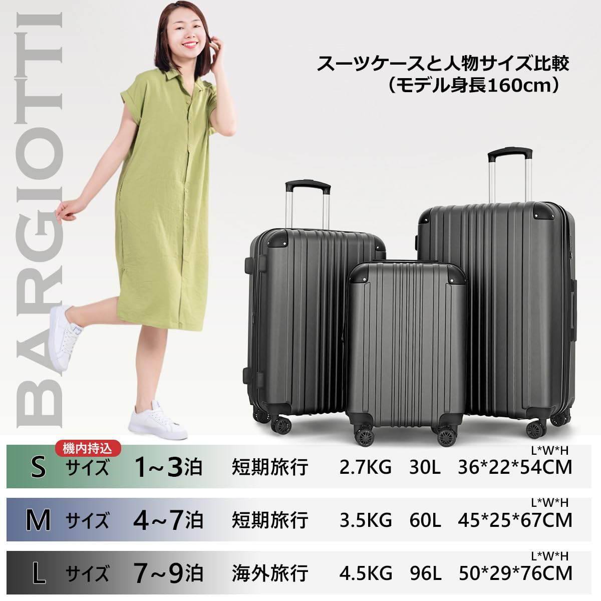 【2022最新】[Bargiotti] スーツケース 機内持ち込み Sサイズ キャリーケース 超軽量 耐衝撃 キャリーバッグ ダブルキャスター 360度回転 ファスナータイプ 大容量 TSAローク搭載 ABS素材 旅行 出張 (Sサイズ/約30L シルバー) | allureshop