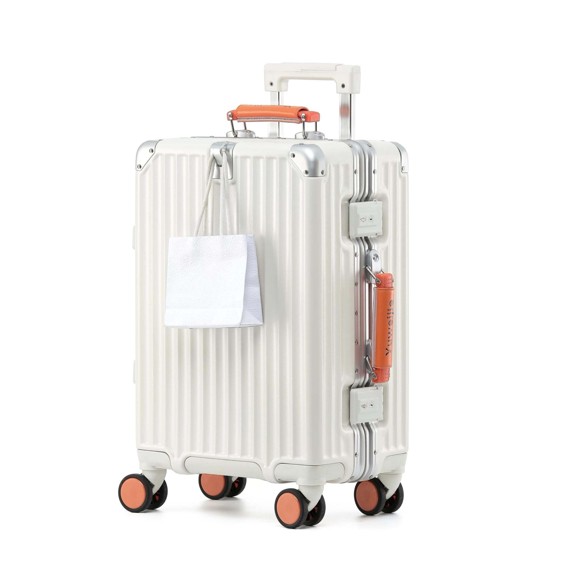 【在庫セール】[Yuweijie] 新感覚!モダン!スーツケース キャリーケース 機内持ち込み 大型 軽量アルミフレーム式 キャリーバッグ 静音 ダブルキャスター TSAロック レトロ おしゃれなハンドル 疲れない設計 入学 海外旅行出張 Sサイズ ホワイト 1-3泊 40L
